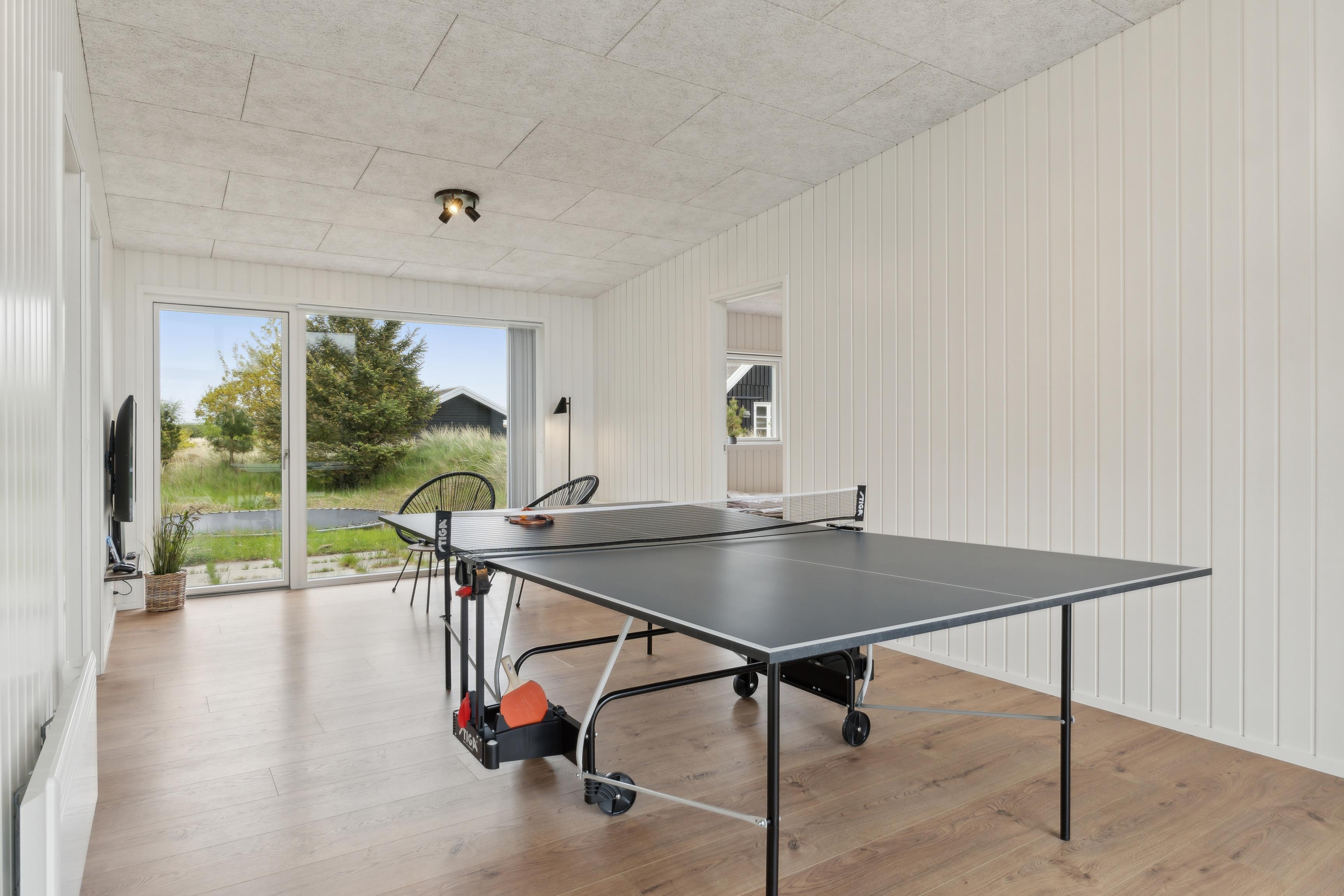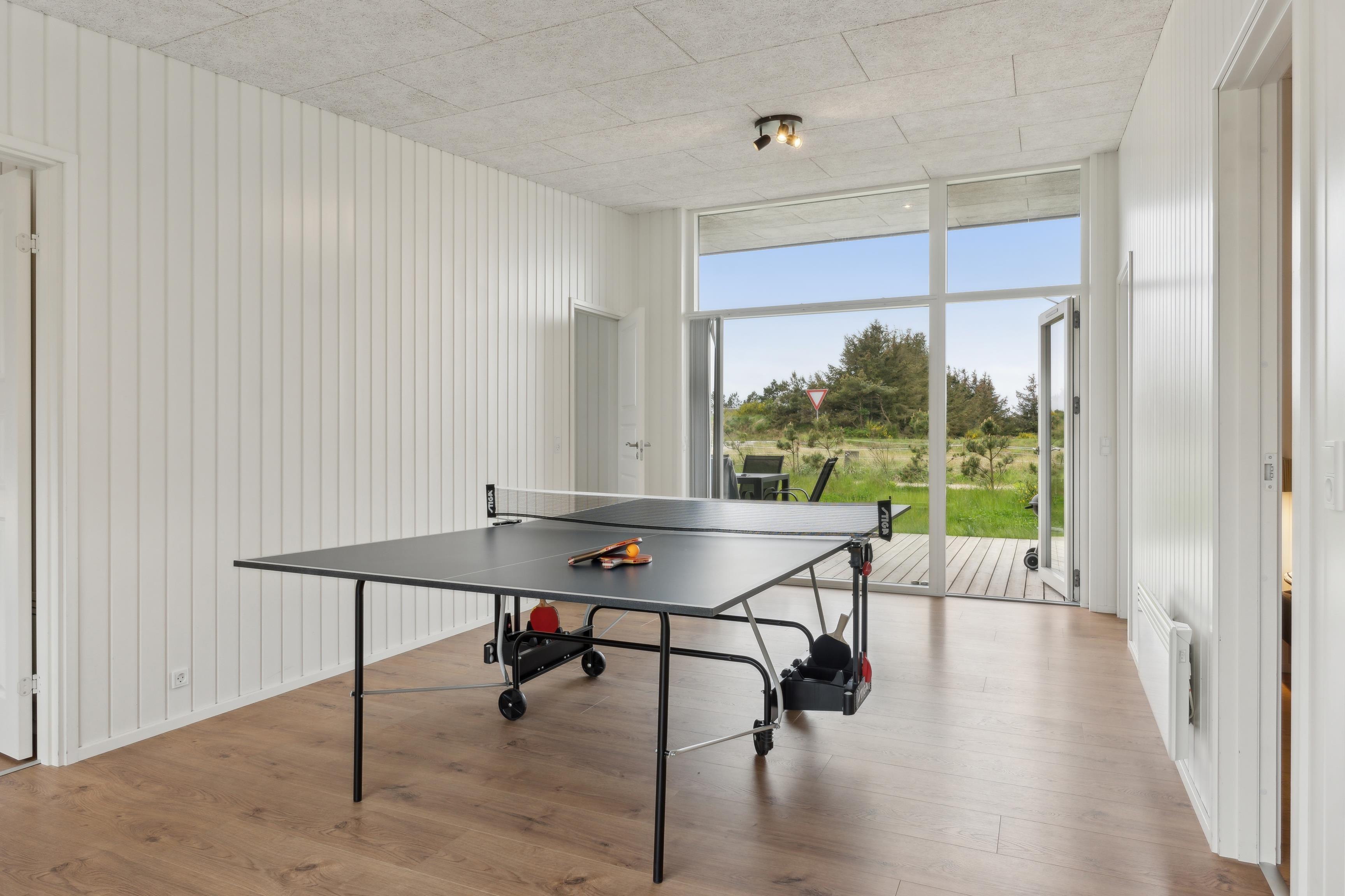 Sommerhuset på Kr. Madsens Vej 75 byder på flere sjove aktiviteter, herunder et aktivitetsrum, hvor hele familien kan dyste og finde feriens spilmester. Her er både PlayStation og bordtennis, som vil sørge for masser af underholdning.