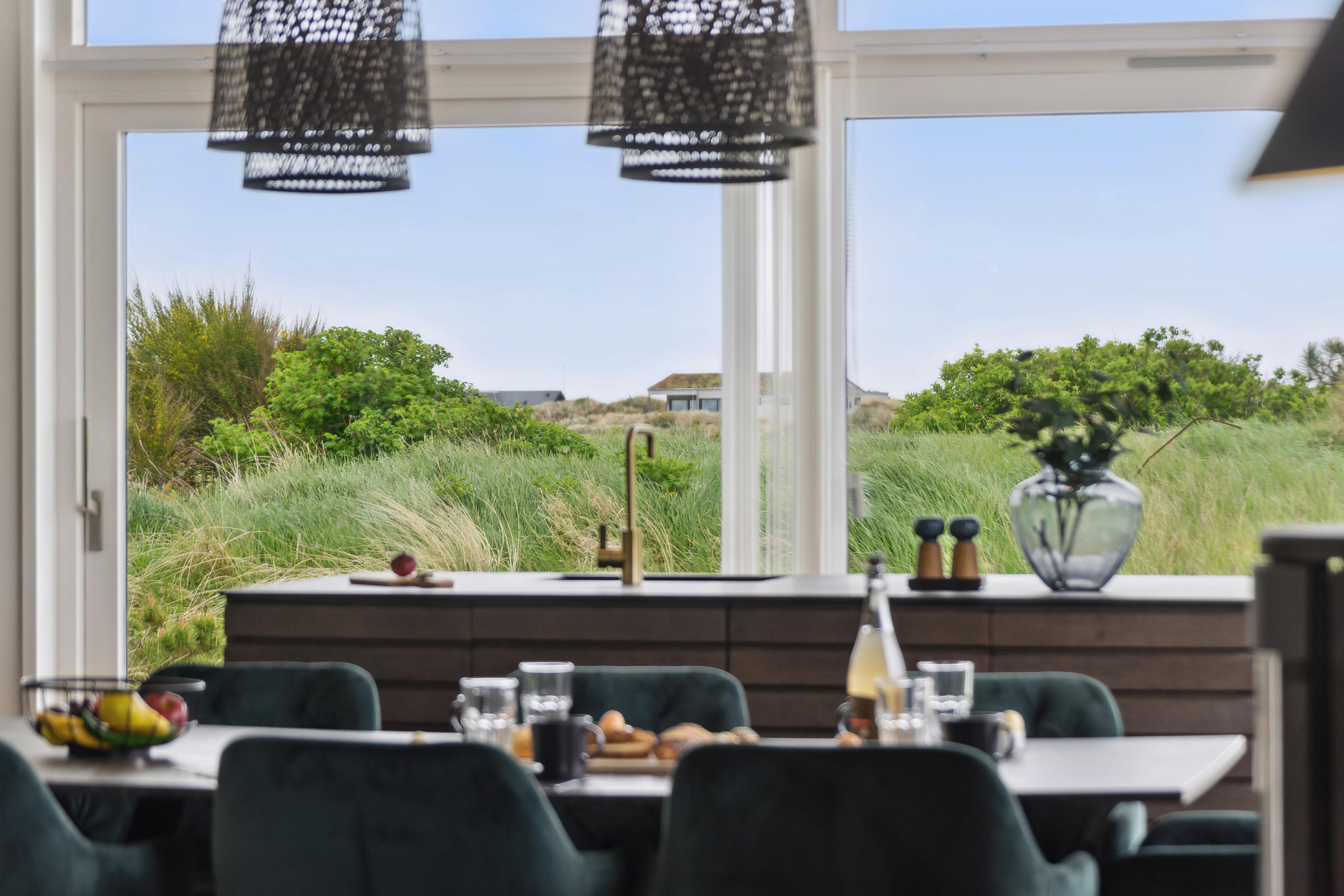 De store vinduer giver masser af naturligt lys og skaber sammen med den moderne indretning en indbydende og hyggelig atmosfære.