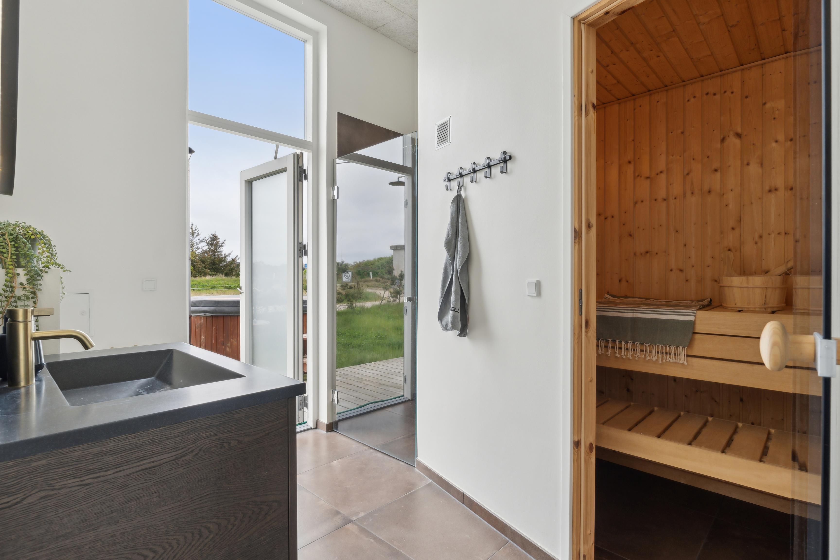 Der er 2 badeværelser, så der ikke opstår kø om morgenen. Et af badeværelserne har desuden en sauna, som er perfekt til afslapning efter en lang gåtur langs fjorden eller et dyp i vandet.