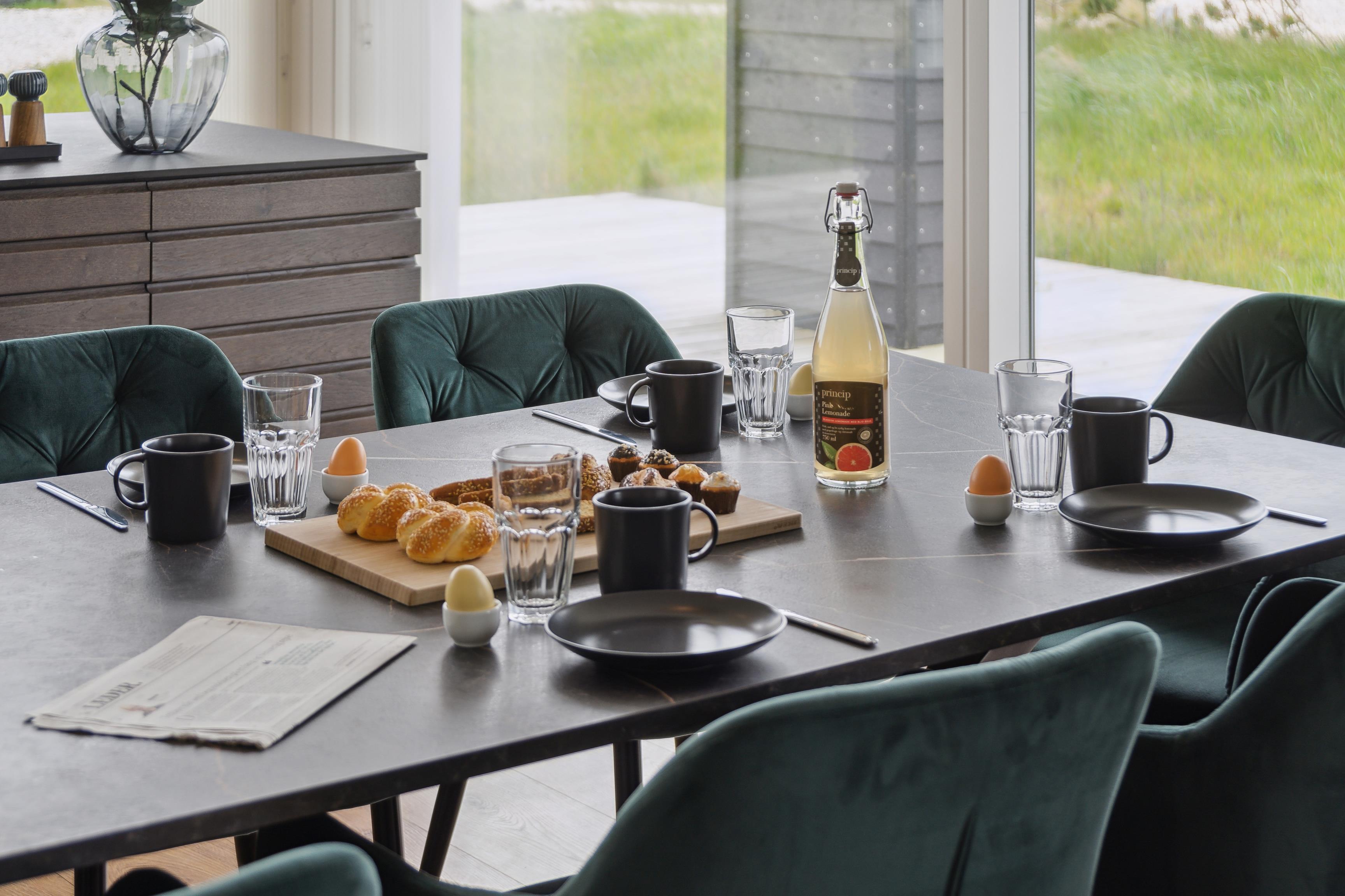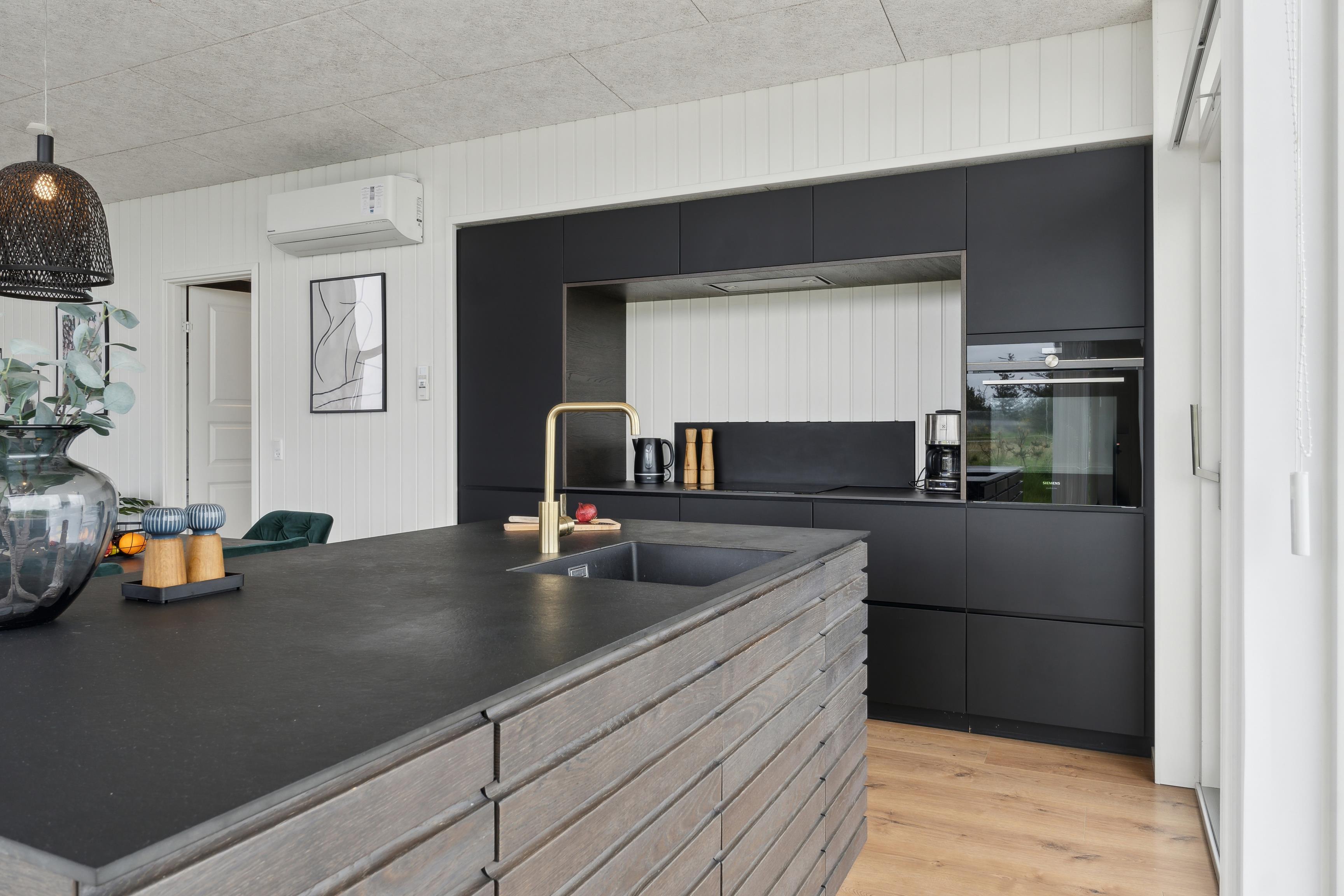 Køkkenet er udstyret med alt, hvad I behøver – opvaskemaskine, mikrobølgeovn og induktionskomfur – og der er rigeligt med plads til at flere kan være med til madlavningen.