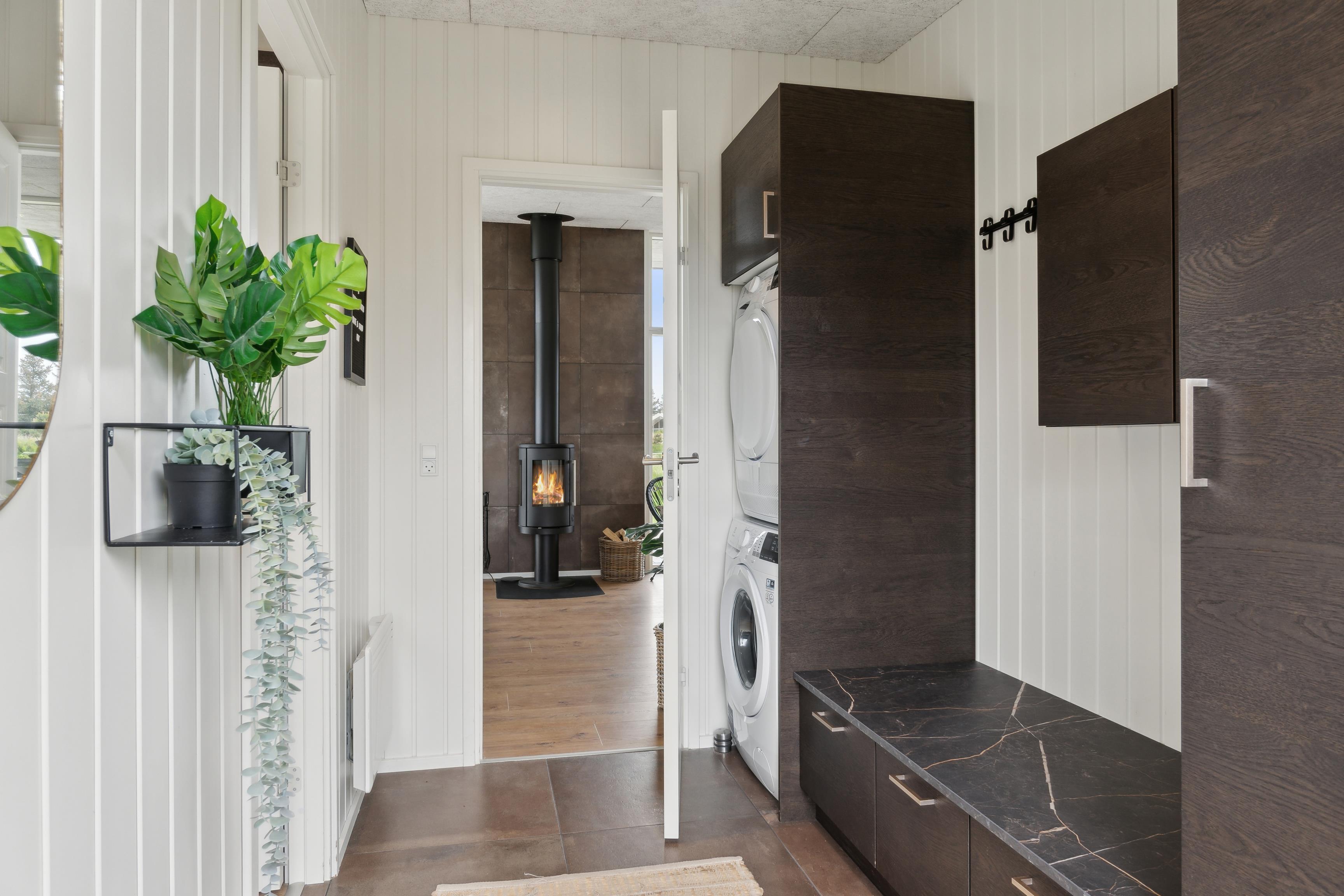 Med både vaskemaskine og tørretumbler har I mulighed for at vaske håndklæder efter en dag på stranden.