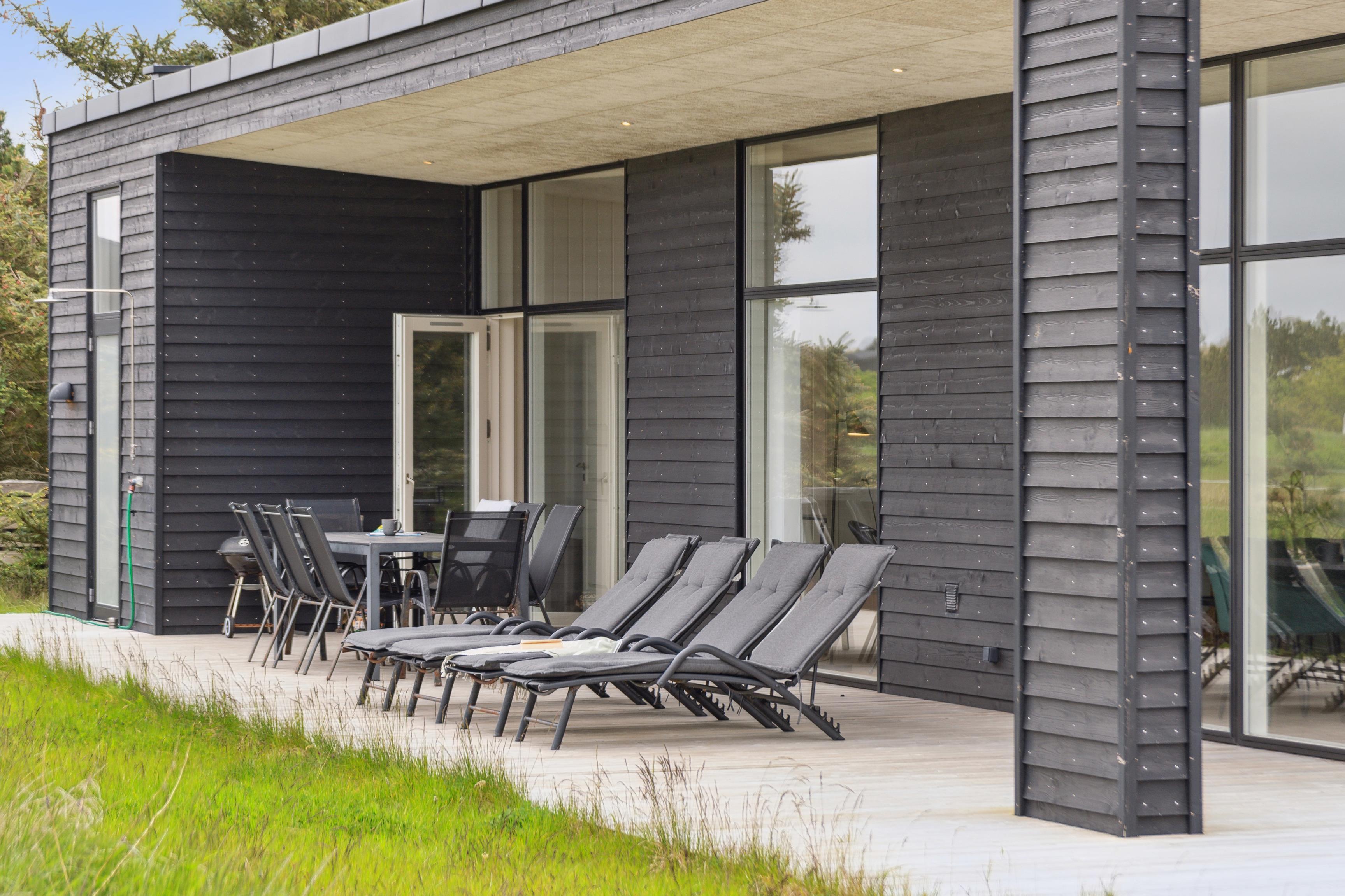 En af sommerhusets absolutte fordele er den overdækkede terrasse, som er et perfekt sted at samles på en varm sommerdag. Her kan I også tage en afslappende tur i vildmarksbadet og nyde et glas vin under stjernerne på en stille sommeraften.