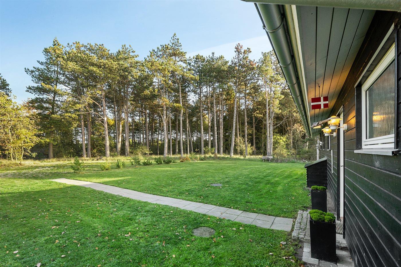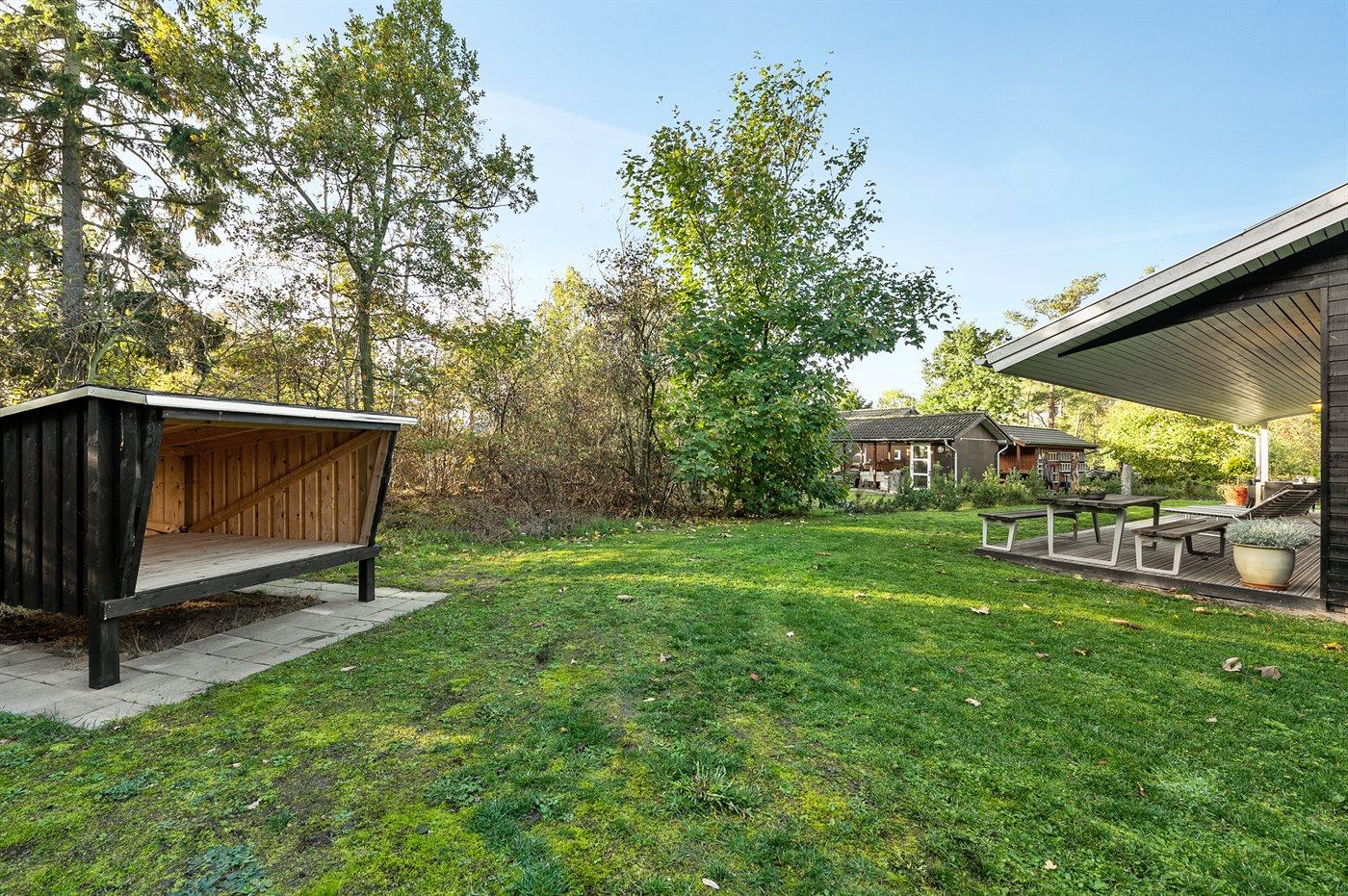 Ferieboligen er beliggende på en 1250 m² stor naturgrund. Der er 400 m til fjorden. Nærmeste forretning er beliggende i en afstand af 3000 m. Desuden er der 43 m² overdækket terrasse. Der er redskabsrum. Parkering ved ferieboligen.