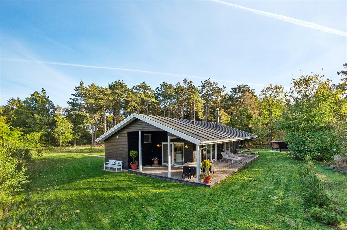 Sommerhuset egner sig til 6 personer. Ferieboligen er på 104 m² og er bygget i 2014. Det er tilladt at medbringe 3 husdyr. Ferieboligen er udstyret med energibesparende varmepumpe. Ferieboligen har vaskemaskine. Frysekapacitet på 10 liter. Der er desuden brændeovn. Til de små er der 1 stk. barnestol.