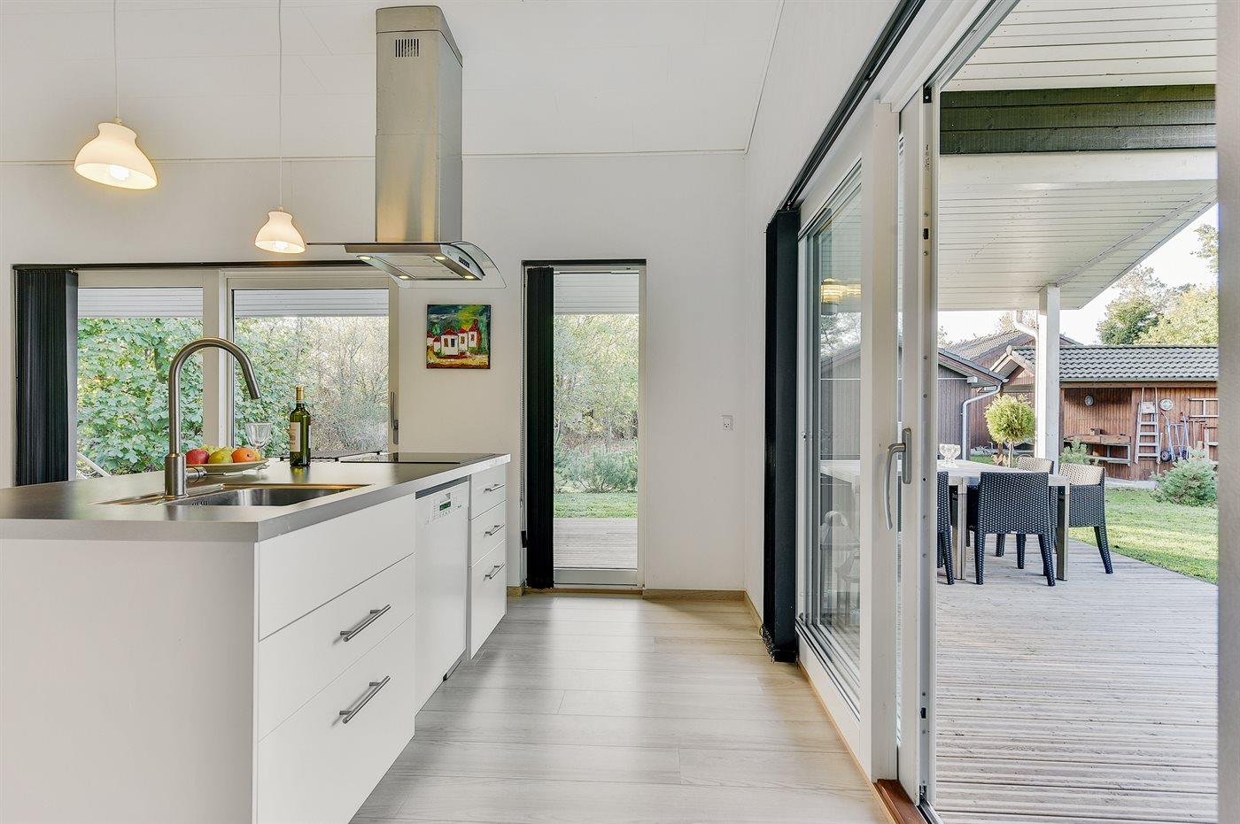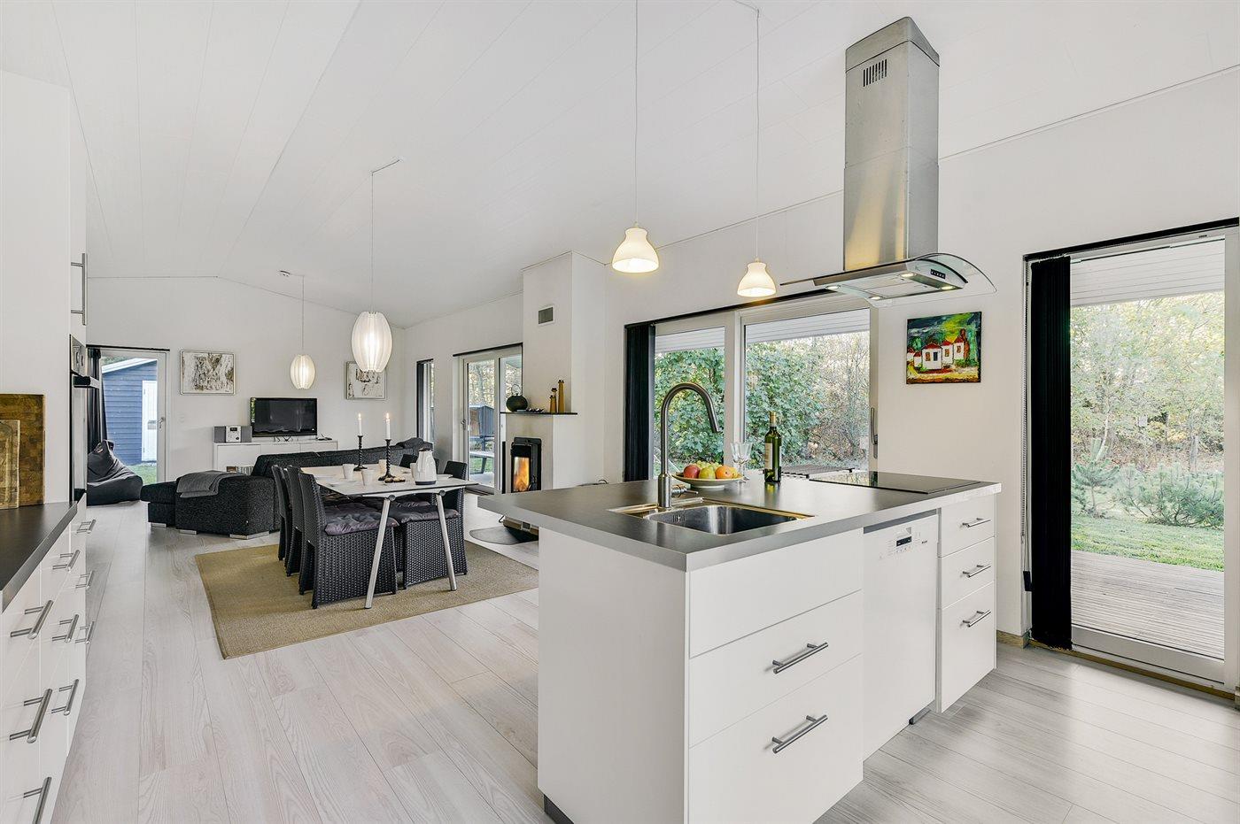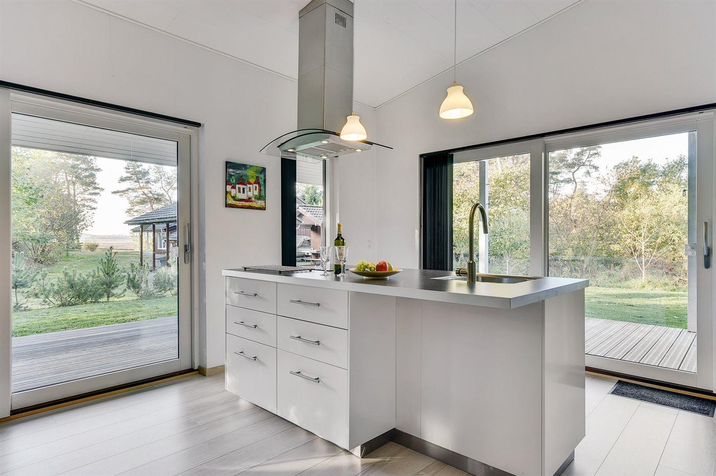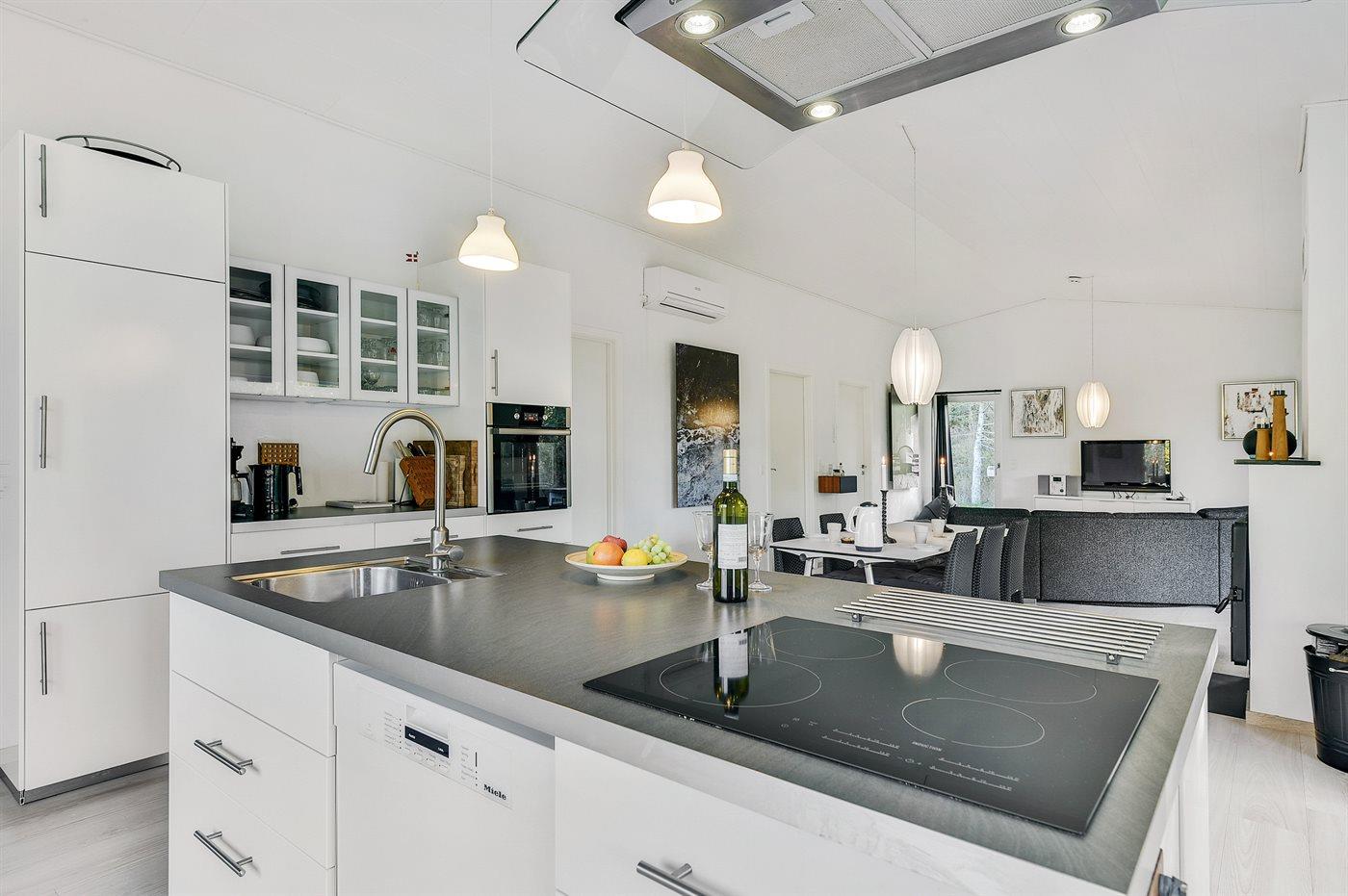 Køkkenet er udstyret med 1 køleskab. Der er 4 induktionskogeplader, varmluftovn, mikrobølgeovn samt opvaskemaskine.
