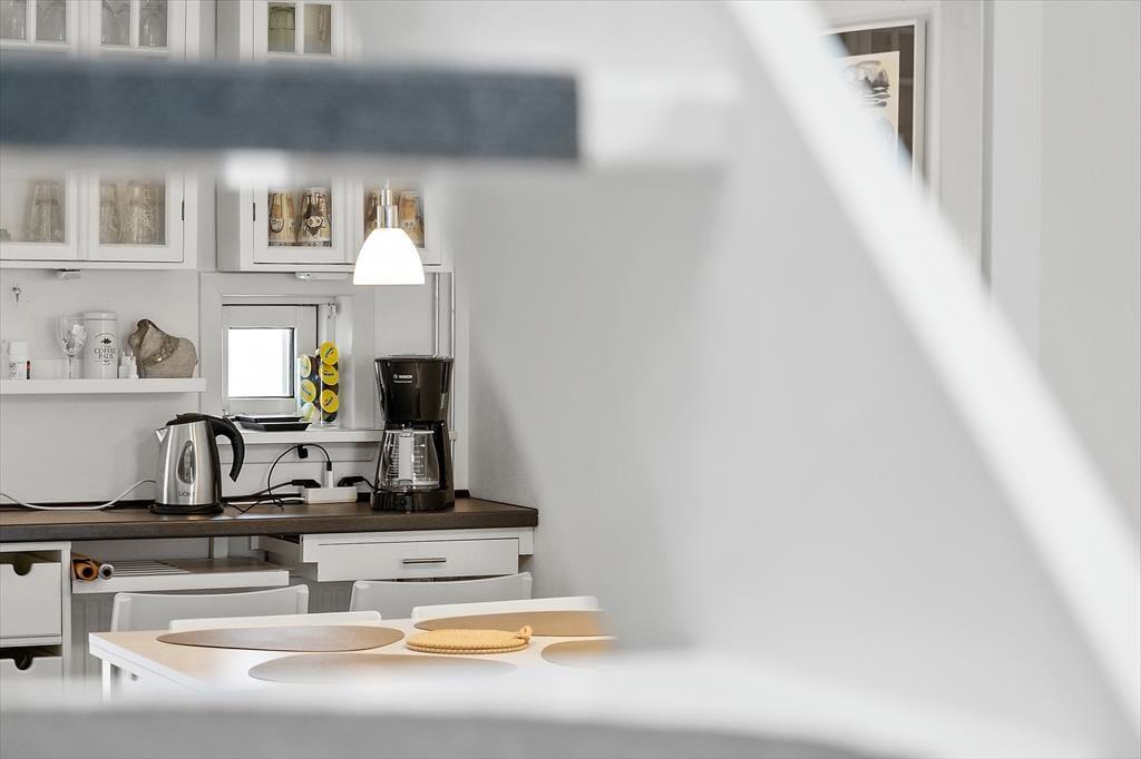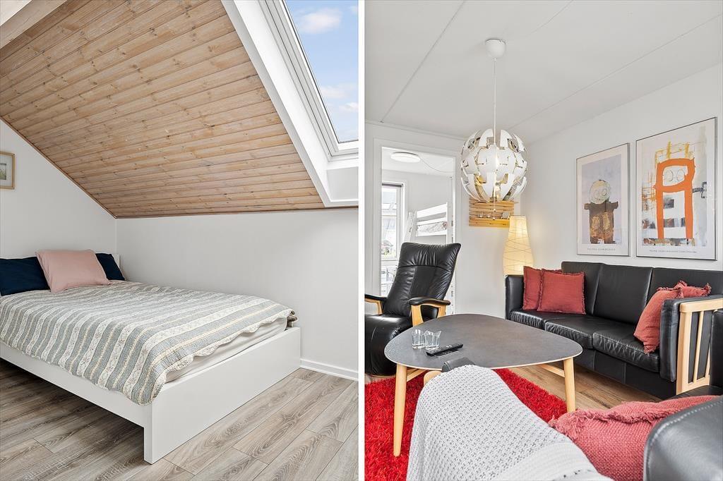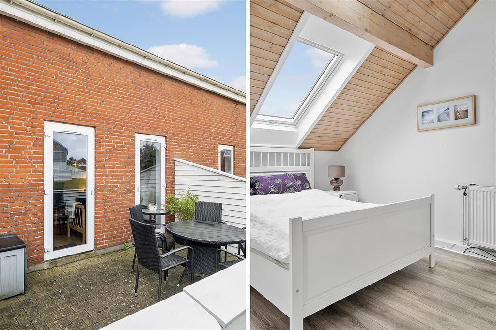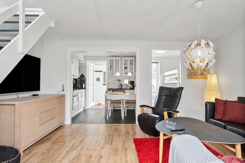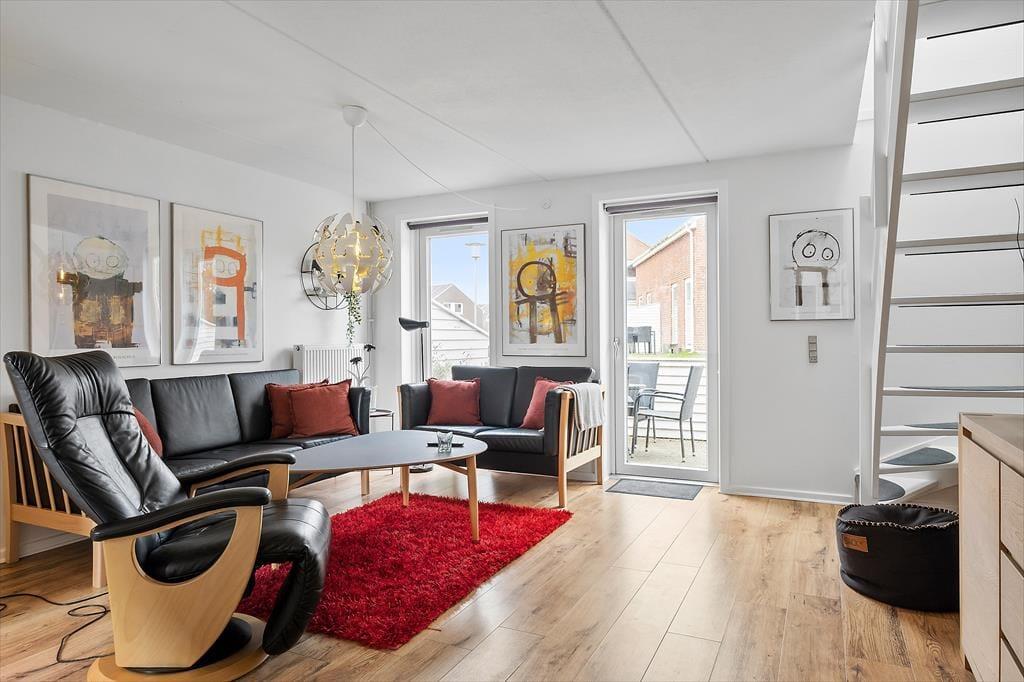 Lejlighedens 68 m² breder sig over to plan, og efter en vellykket renovering i 2023 fremstår begge etager lyse og indbydende. Der er to soveværelser med dobbeltseng på førstesalen og et værelse med køjeseng i stueplan, og ovenpå finder du for øvrigt et badeværelse med bruser og vaskemaskine. I stueetagen ligger køkken og stue i åben forbindelse, så du behøver ikke at misse småsnak og familiehygge, selvom der skal røres i gryderne eller kigges til lasagnen. Når maden er lavet, og måltidet er spist, er det rart at have en opvaskemaskine i køkkenet, for så kan du hurtigt få ryddet af og smutte ind i sofaen eller ud på terrassen.