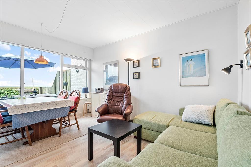 Udsigten er fremragende i denne fine feriebolig, der ligger som del af West Apartments nær Havneby. Fra stuen og den ene terrasse kan I skue lige ud over Vadehavet, der breder sig omtrent 100 meter fra huset.