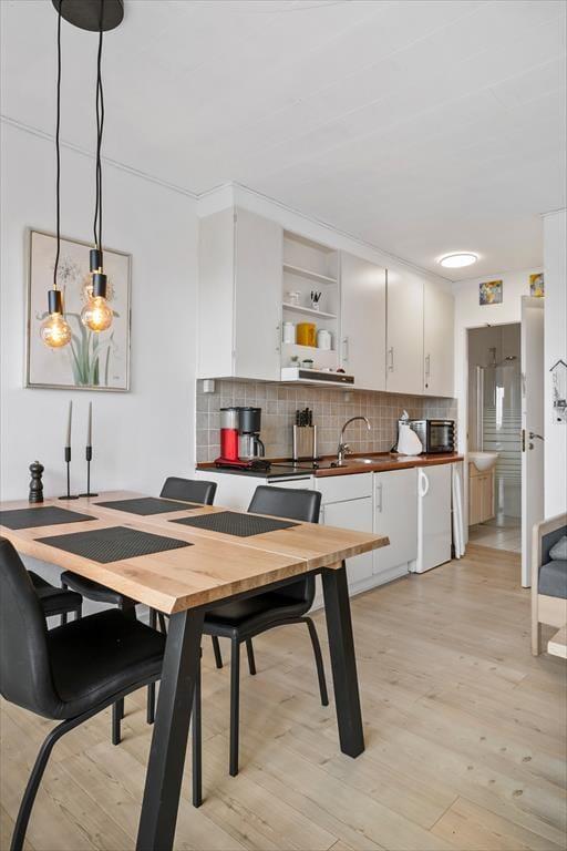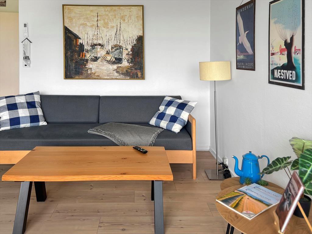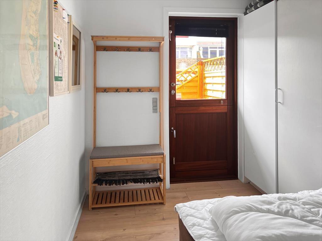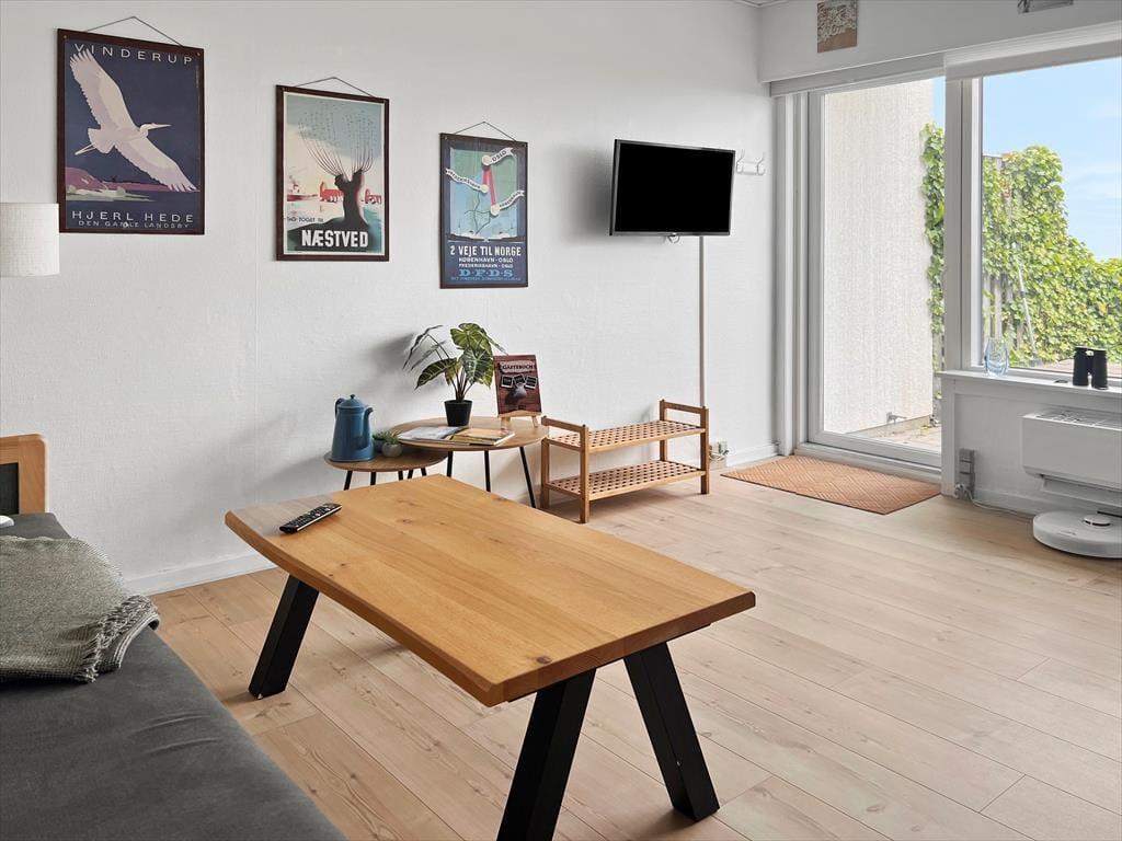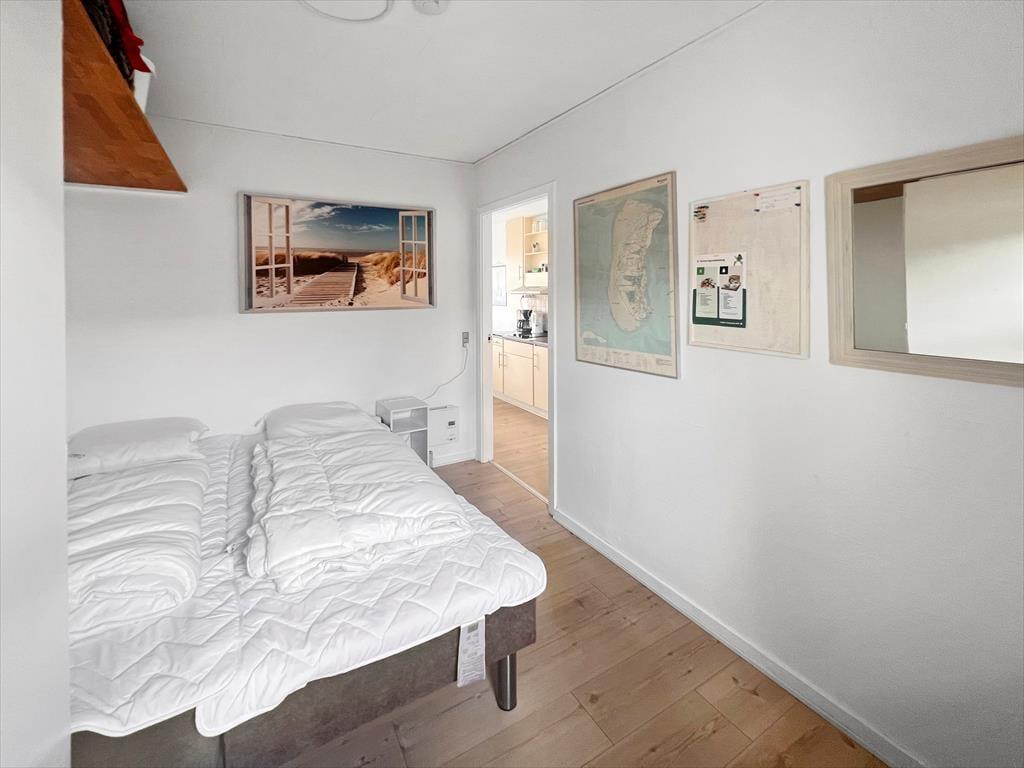 Mere præcist er der tale om et rækkehus, der ligger i den yderste række af West Apartments lige ud mod vandet. Et stort vinduesparti byder Vadehavsudsigten og dagslyset velkommen, og den vellykkede renovering og fornuftige planløsning er også med til at give jer en skøn ramme om ferielivet inden døre. I stuen er der fladskærms-tv, spisebord og en sofa, der om natten kan slås ud som seng. Med andre ord er den et fint supplement til soveværelsets dobbeltseng, så I har mulighed for at være fire personer i ferieboligen. Badeværelset er med bruseniche og hvide fliser, og et pænt køkken er integreret med stuen, så I kan hygge jer sammen, også når det er tid til at lave mad.