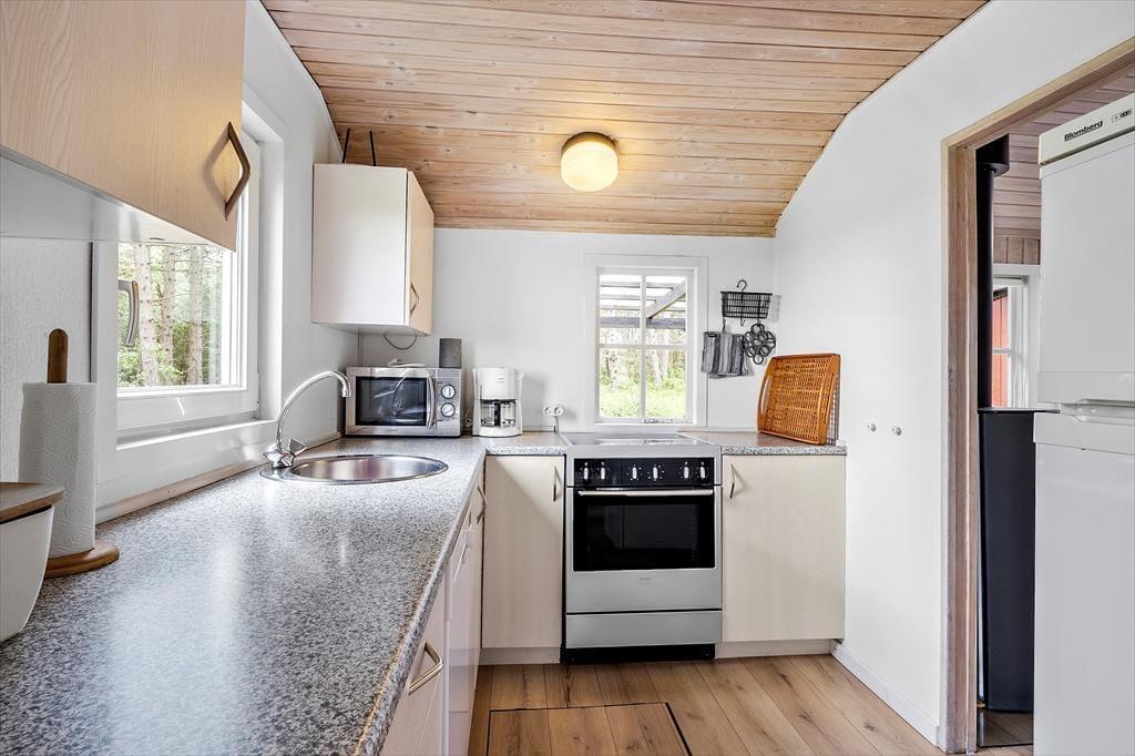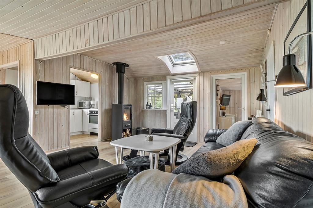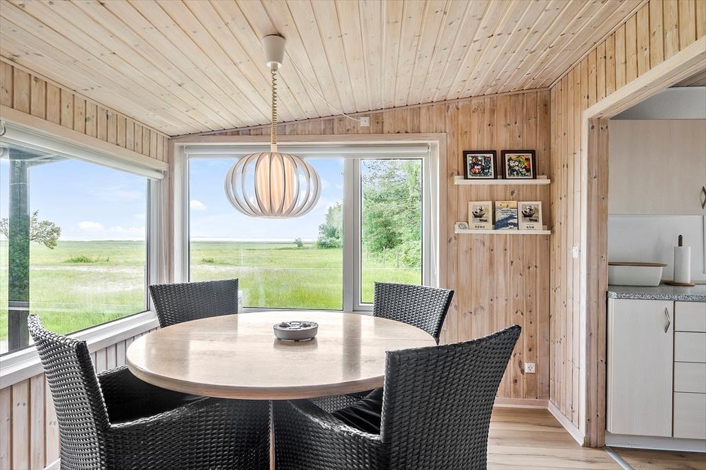Det klassiske træhus har ligget her på denne naturskønne plet på Danmarkskortet siden 1950. Siden er der kommet glimrende forbedringer til – f.eks. i 2018, hvor huset blev udvidet med 10 m2, så Vadehavsudsigten nu er endnu bedre fra stuen. Netop stuen er et dejligt sted at nyde ferielivet. Siden er der i 2020 kommet en tilbygning på 7 m2, som anvendes som soveværelse. Herfra er der adgang til den sydvestvendte terrasse. De store vinduespartier sørger for, at I kan skue ud over det åbne kystlandskab og Vadehavet, og samtidig bliver generøse mængder dagslys inviteret indenfor. En brændeovn spreder hygge og varme, og der er også mulighed for at tage varmepumpen i brug. Fra stuen er der åben forbindelse ind til et lille og funktionelt køkken, og derudover består planløsningen af et badeværelse samt tre soveværelser med i alt fem sovepladser. Bemærk, at husets loftshøjde i enkelte rum kun er cirka 1,75 m, og i badeværelses bruseniche er højden 1,80 m.