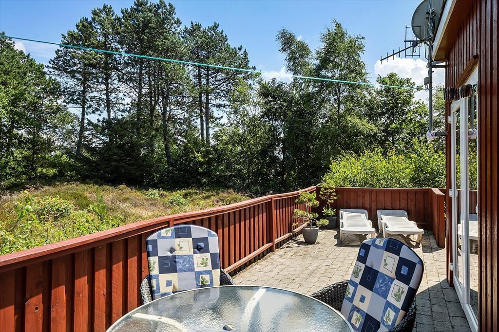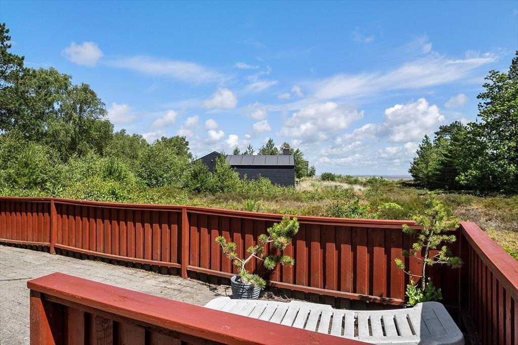 Hvis du flytter driverlivet ud på terrassen, kan du ikke bare nyde synet af Vadehavet, men også få glæde af alle duftene fra naturgrundens lilla lyng, nåletræer og anden bevoksning. Vil du sidde i solen, er der rig chance for at finde en god opholdsplads på den sydøstvendte terrasse, og ellers kan du slå parasollen op for at finde skygge. Op til to hunde er velkomne i huset, og mon ikke familiens firbenede venner vil blive begejstrede for den lukkede terrasse og de rolige omgivelser på den 1462 m² store naturgrund.