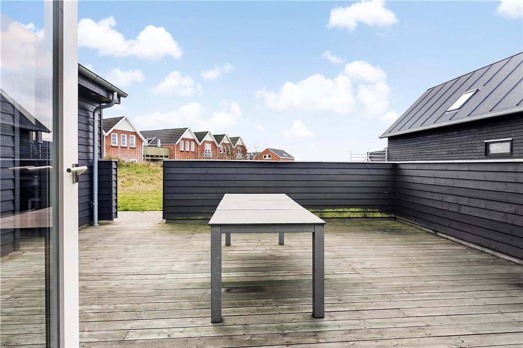Når det er solrigt og sommerligt udenfor, er det oplagt at flytte livet ud på den store, sydvestvendte terrasse. Der er direkte adgang fra stuen og køkkenet, så det føles som en herlig udvidelse af det indendørs opholdsareal. På terrassen er der grill, havemøbler og liggestole til rådighed, som alt sammen er med til at forsøde ferietilværelsen.