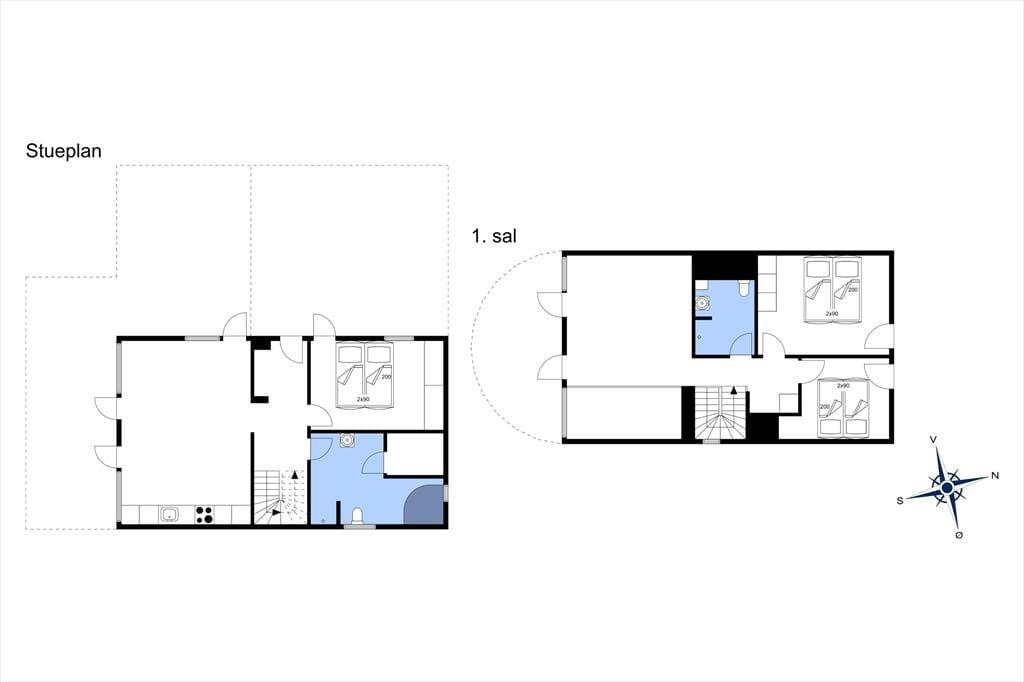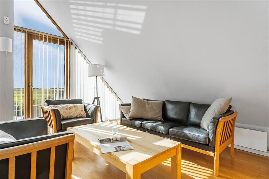 I alt tre soveværelser og to badeværelser er fordelt på husets to etager. Soveværelserne er alle indrettet med dobbeltseng og tv, og det ene af badeværelserne er udstyret med spabad og sauna. Husets køkken-alrum ligger i stueplan, mens en stue er placeret på første sal – og begge opholdsrum peger mod syd, så I får mest muligt ud af udsigten.