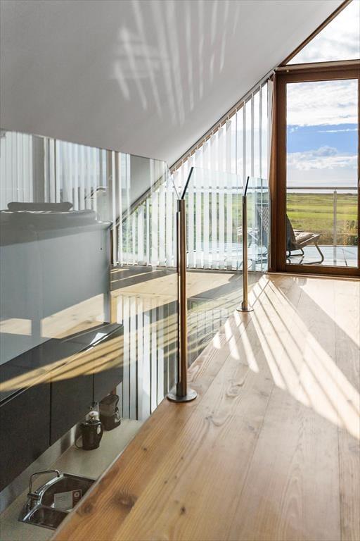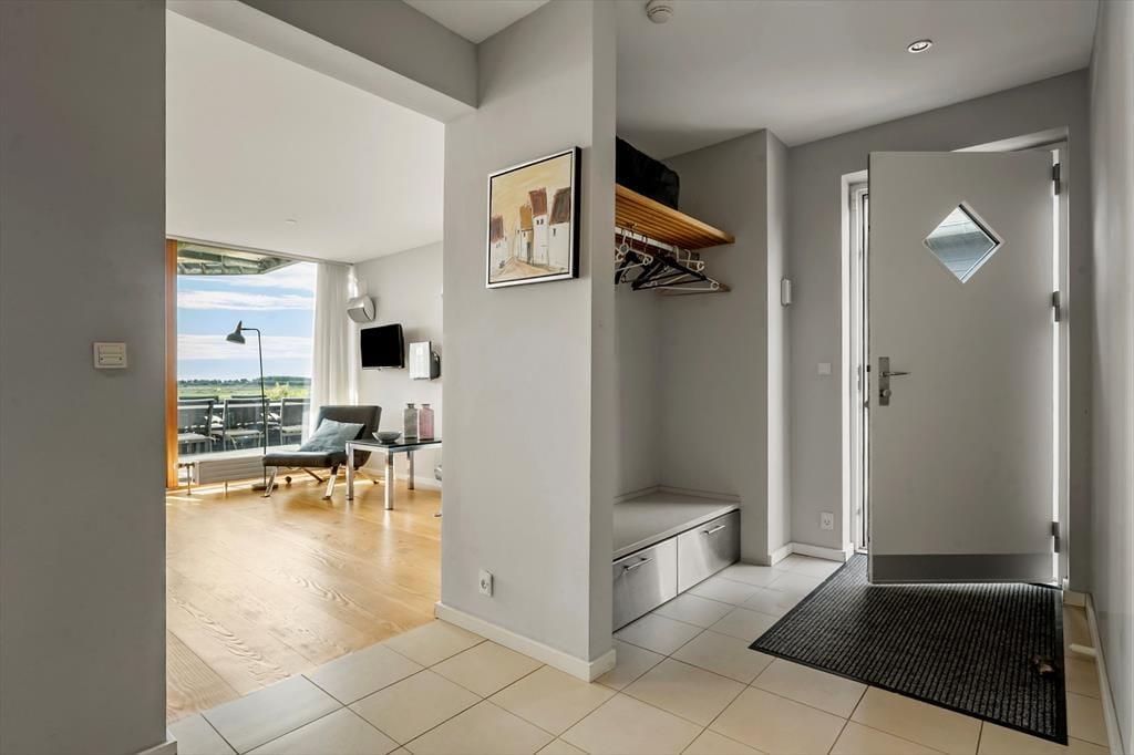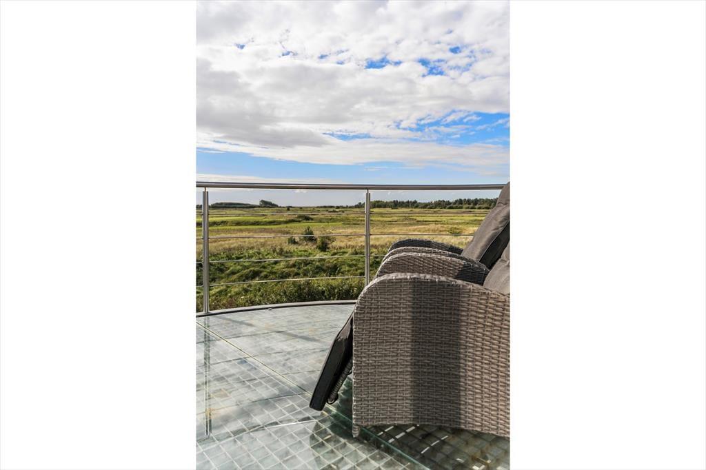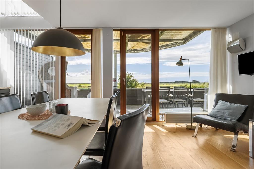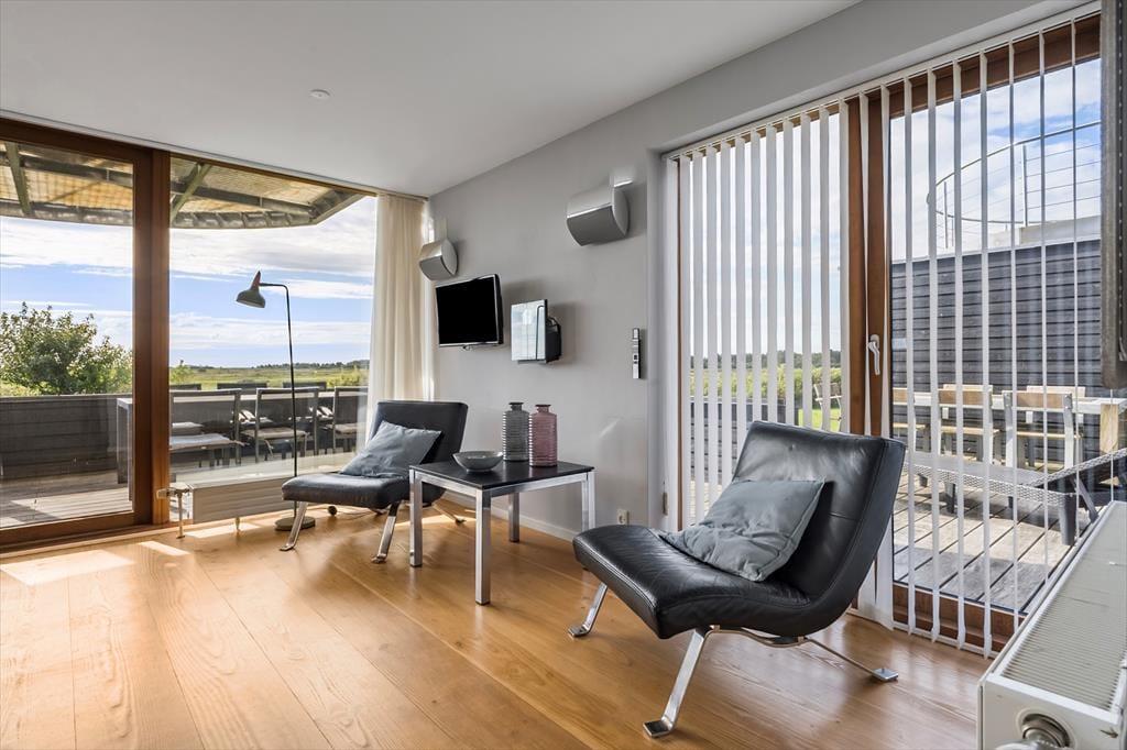 Sommerhuset er opført i 2007 og ligger alleryderst i det attraktive område ”Havhusene”. Det er netop takket være beliggenheden, at udsigten er så eminent, for fra både stueplan og førstesalen kan I skue langt ud over det flade landskab. Solen får fri passage ind gennem de store vinduespartier, og det skaber en lys og luftig atmosfære i de velindrettede rum.