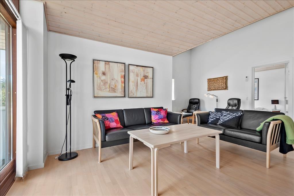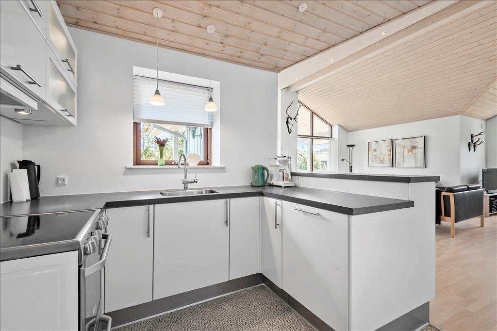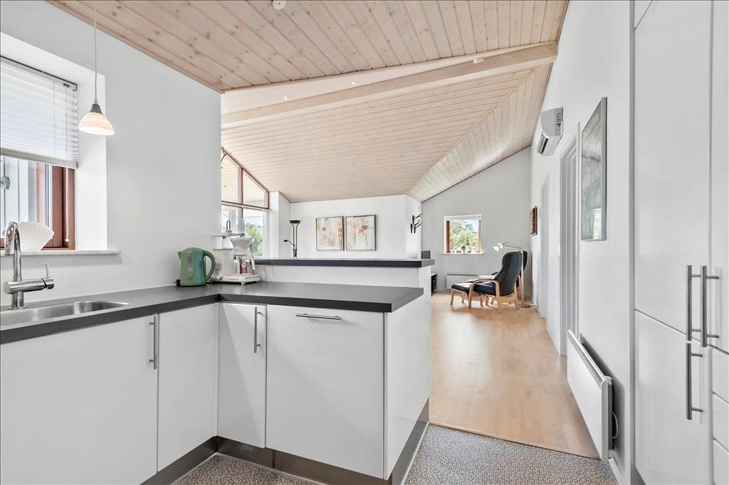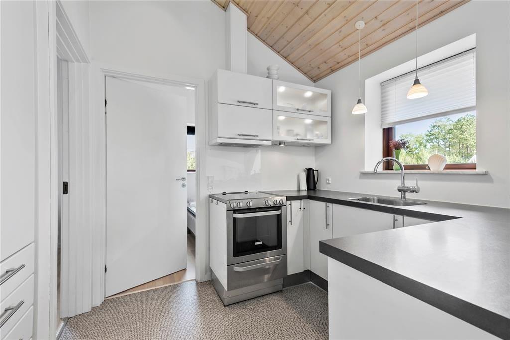 Med sin lyse træfacade og sine indbydende terrasser kan man allerede se udefra, at der er tale om et charmerende, dansk sommerhus. Selvom stilen er klassisk, har huset dog ikke mange år på banen, for det er opført i 2009 og fremstår derfor pænt og velholdt med en lys og moderne indretning inden døre. Store vinduespartier inviterer generøse mængder af dagslys ind i opholdsrummet, som består af køkken og stue i åben forbindelse. Her er god plads til at kokkerere, nyde måltiderne ved spisebordet, slappe af i sofaafdelingen og se en god film i tv-krogen. Når det er sengetid, kan I gå til ro på husets tre soveværelser – bare I husker lige at svinge forbi badeværelset for at børste tænder.