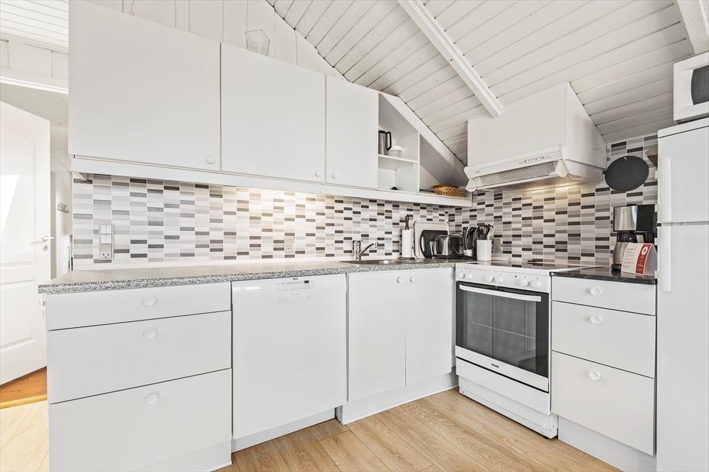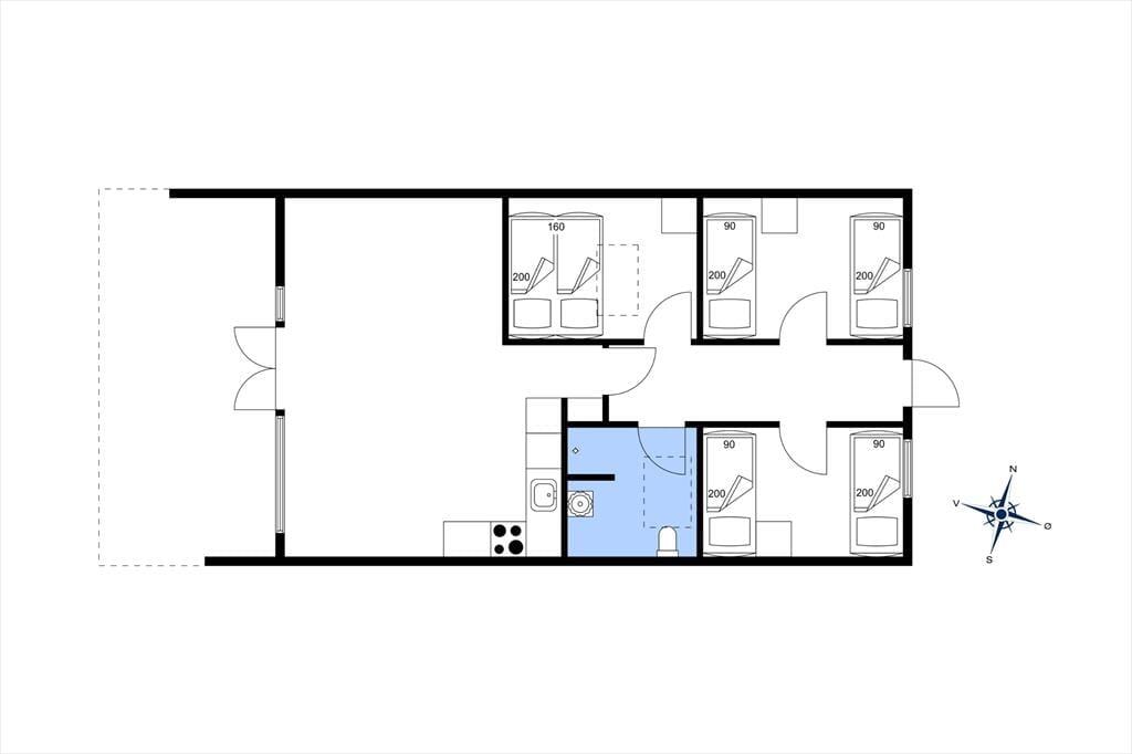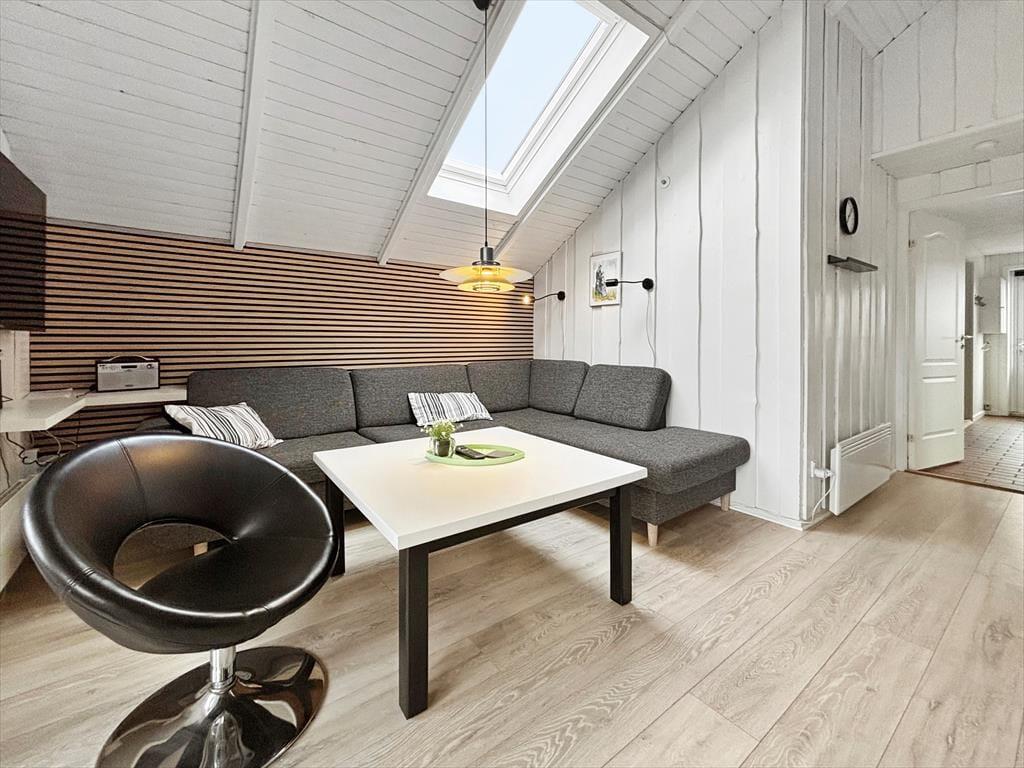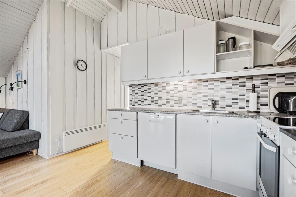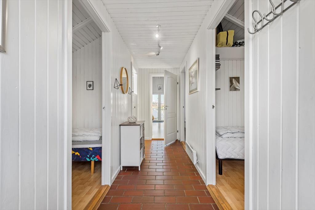 Der er nærmere bestemt tale om et rækkehus i ét plan, som takket være en fornuftig planløsning kan rumme seks personer. Soveværelser er der tre af, og derudover byder huset på et badeværelse og en stue med integreret køkkenafdeling. Alle rum fremstår pæne, lyse og velholdte, for huset blev nemlig renoveret i 2015. Af praktiske detaljer kan det blandt andet nævnes, at der er håndklædetørrer og gulvvarme på badeværelset, mens køkkenet giver dig en god og veludstyret arbejdsplads, når der skal kokkereres. I stuen kan du samles om spisebordet for at spise eller spille brætspil – medmindre du hellere vil slænge dig i hjørnesofaen og se en god film på fladskærmen.