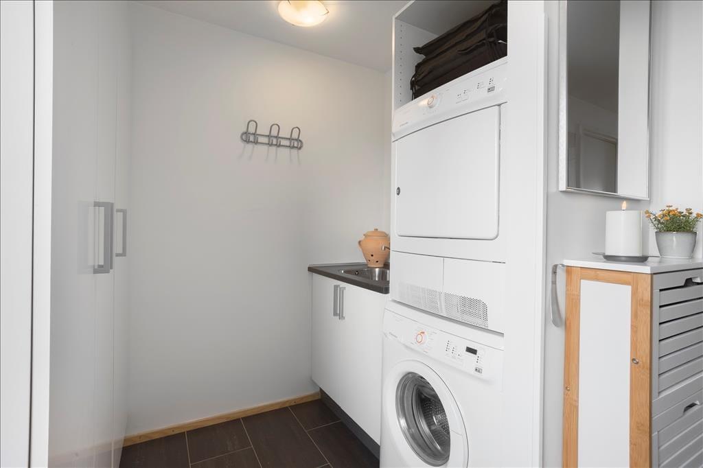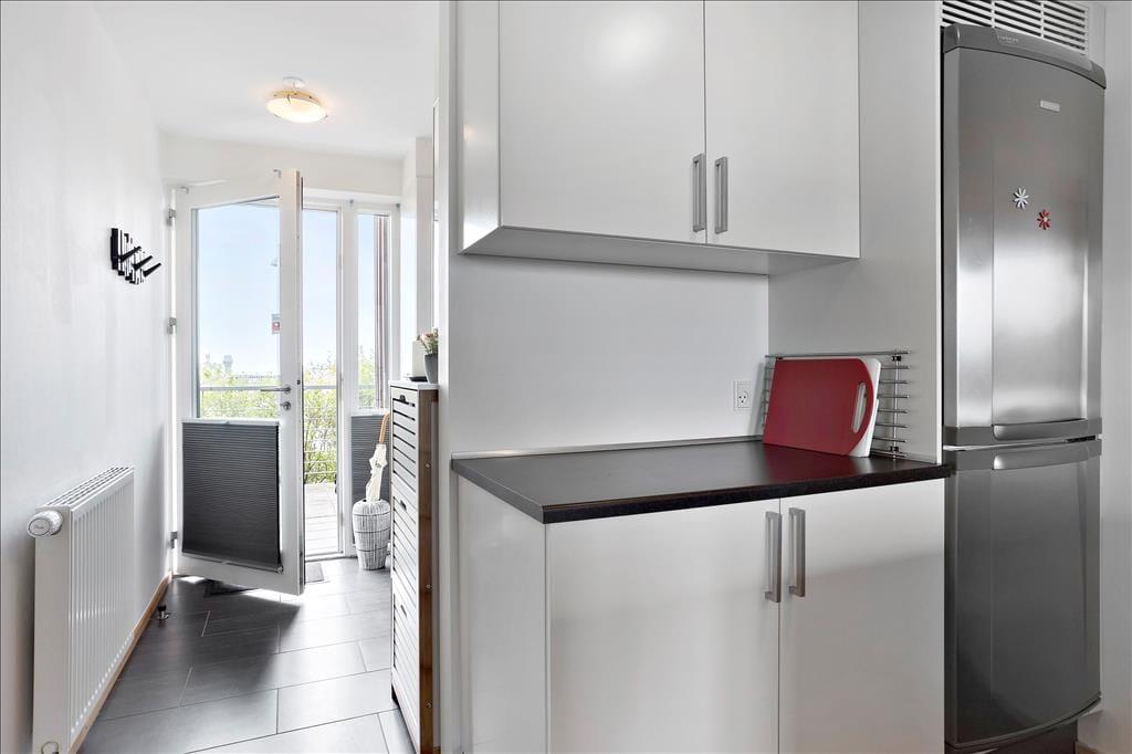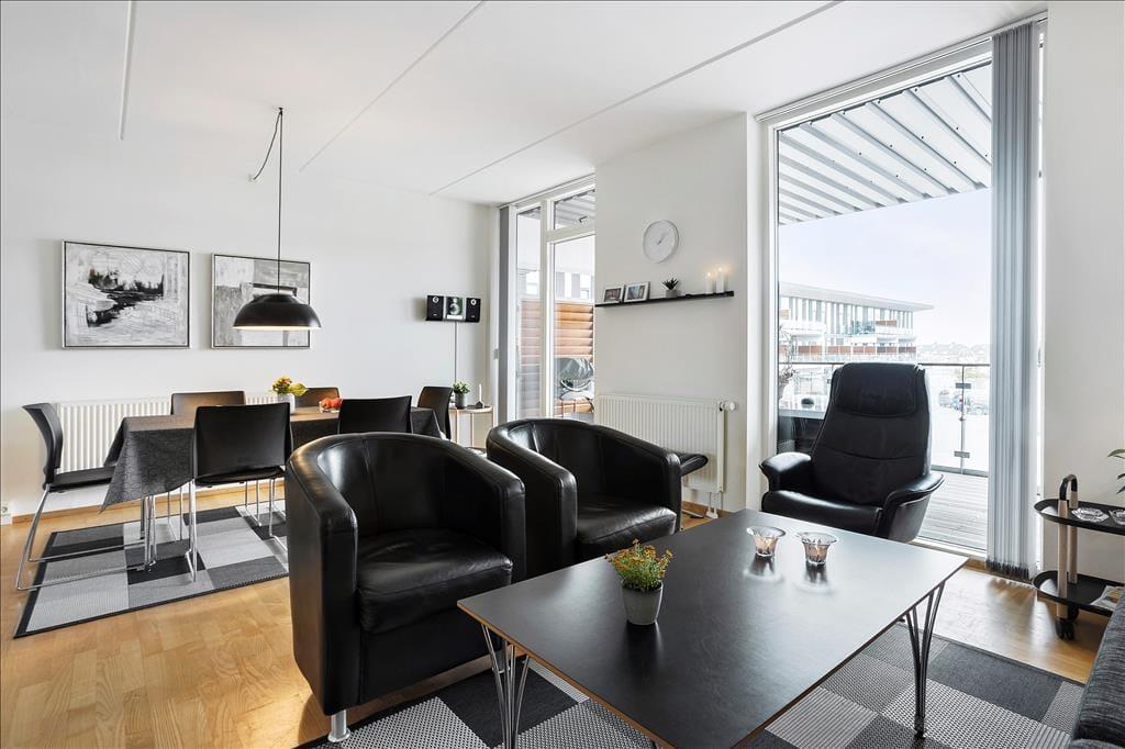Ferieboligen, der måler 62 m2, ligger i lejlighedskomplekset Skansen fra 2009. Lejlighedens interiør er flot afstemt til den moderne arkitektur, så I får en særdeles indbydende ramme om ferielivet. Alle rum er lyse og velindrettede – selv entréen, som er udstyret med garderobeskabe samt vaskemaskine og tørretumbler. Fra entréen er der åben forbindelse til opholdsrummet, hvor et pænt køkken er integreret med en dejlig stue. Her er der biopejs, når I vil skrue op for hyggestemningen, og der er TV med Chromecast, hvis I trænger til at afslutte dagen med en god film. Planløsningen byder for øvrigt også på et badeværelse med bruseniche og et soveværelse med dobbeltseng.