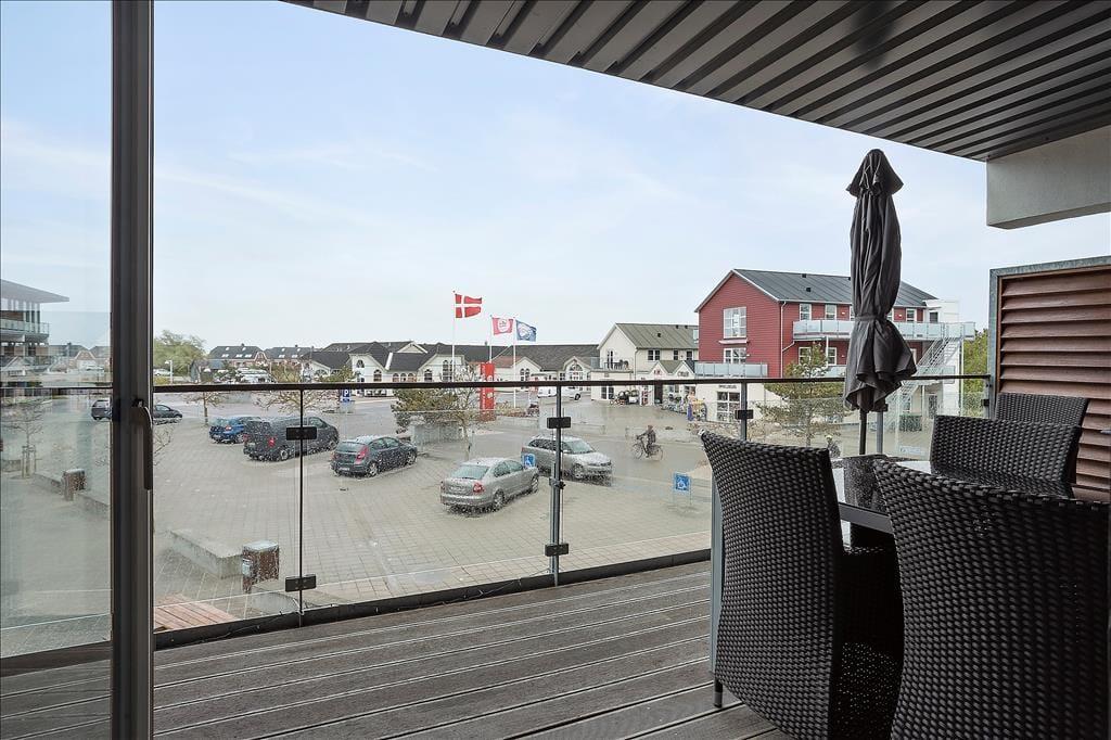 Fra stuen har I direkte adgang til en sydvendt altan, der er overdækket og afskærmet ind mod naboerne. Mod syd er der glasafskærmning, så I kan få glæde af solen, når den skinner over Havneby – og så giver det jer også mulighed for at følge med i bylivet på torvet.
