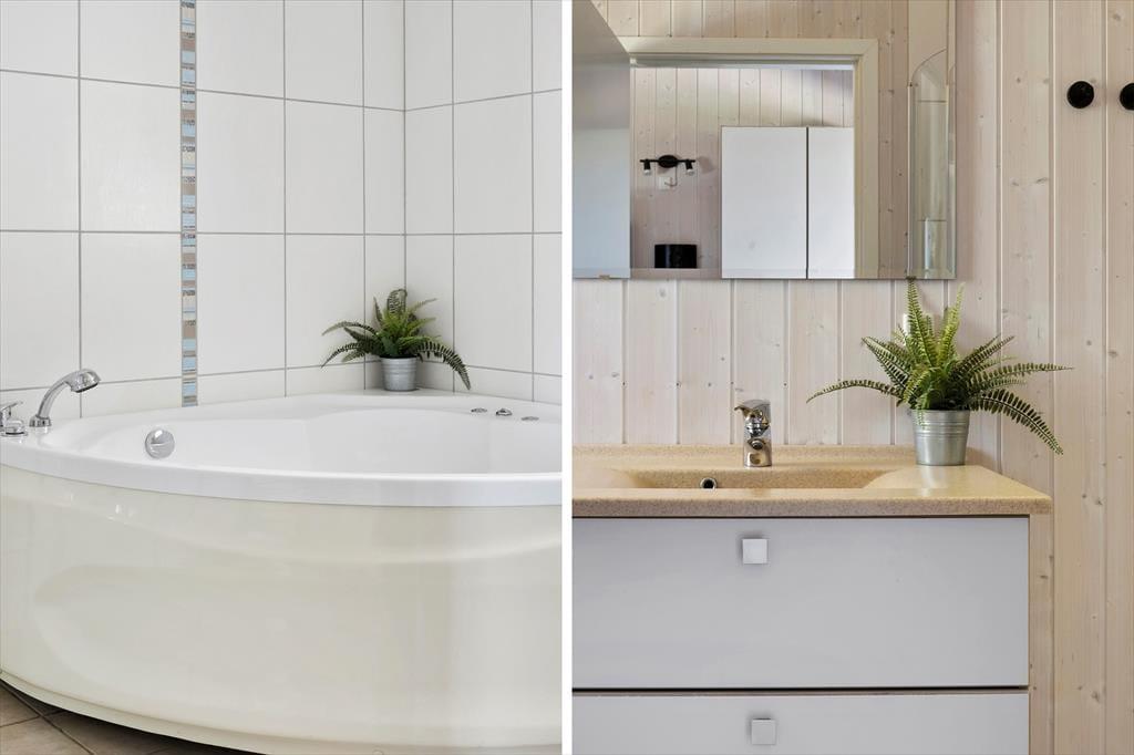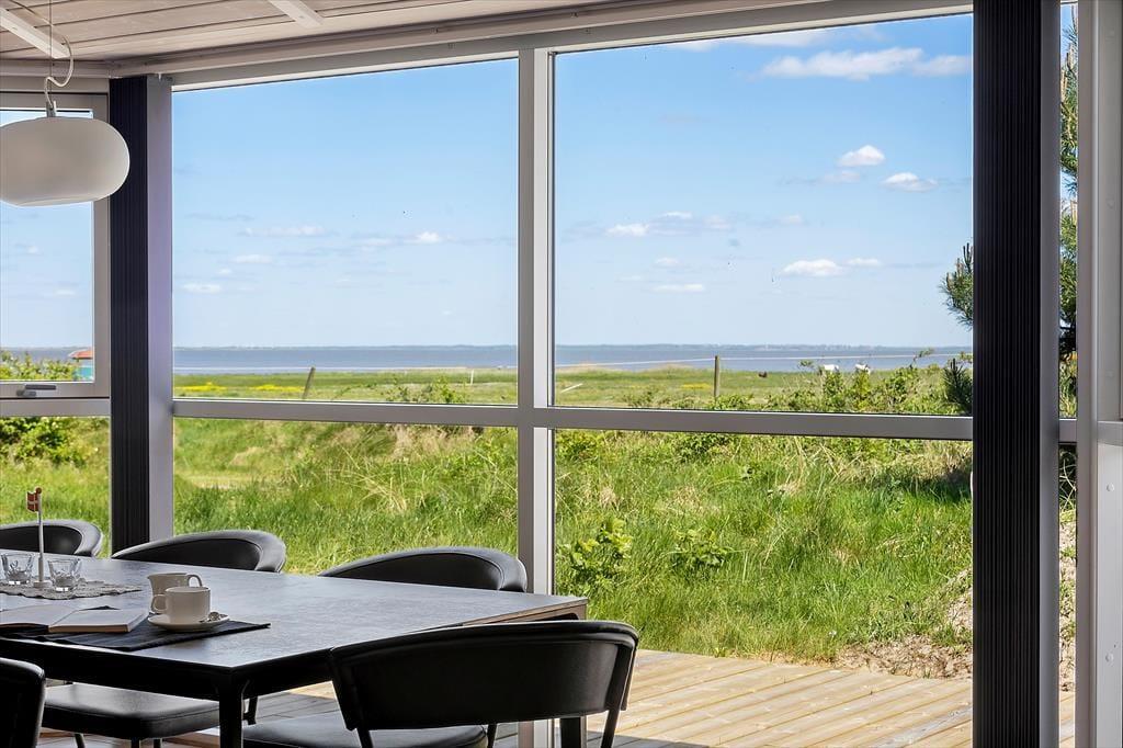 Sommerhuset, som er opført i 2009, er fuld af smarte detaljer, der gør ferielivet særdeles behageligt inden døre. Eksempelvis er det et topisoleret lavenergihus med jordvarmeanlæg og gulvvarme i alle rum, så det kan sagtens bruges hele året rundt. På kølige dage kan gulvvarmen suppleres af både brændeovn og varmepumpe, og når sommersolen skinner, kan varmepumpen køle huset ned. Desuden er det værd at bemærke, at dørbredden er 90 cm, så tilgængeligheden er god for kørestolsbrugere. Planløsningen er perfekt til otte personer: Her er fire soveværelser og to badeværelser, hvoraf det ene er udstyret med et dejligt spabad til to personer. Det sociale samlingspunkt er husets store opholdsrum, der består af stue og køkken i åben forbindelse. Rumfornemmelsen er virkelig behagelig, for her er højt til loftet og store vinduespartier, der inviterer dagslyset og Vadehavsudsigten indenfor.