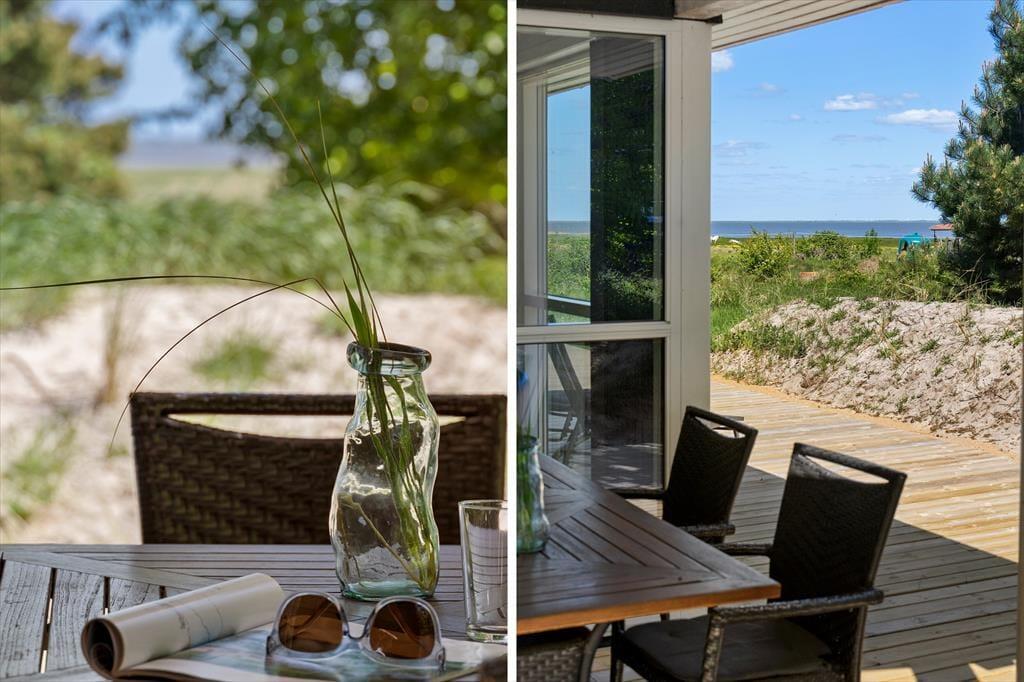 De naturskønne omgivelser kan bestemt også nydes ude i det fri på den store, grønne grund. En oplagt opholdsplads er den store, delvist overdækkede træterrasse, der er orienteret ud mod Vadehavet. Eftermiddagen kan tilbringes tilbagelænet i liggestolene, og når det er ved at være spisetid, kan du tænde op i grillen, dække op ved havebordet og glæde dig til et dejligt sommermåltid med den skønneste havudsigt.