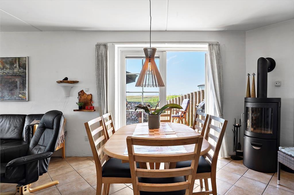 Helt præcist er der tale om et halvt dobbelthus fra 2006. Du kan brede dig på to etager, der byder på to gode badeværelser, tre soveværelser og en skøn stue med integreret køkken og en solrig karnap. Som tillæg til soveværelserne er der to hemse med to sengepladser hver, så i alt kan du være ti gæster i ferieboligen. På begge etager er lysindfaldet glimrende, og synet af Vadehavet er nærmest allestedsnærværende. Et godt sted at falde i staver over udsigten er stuens solrige karnap – og når du skræller kartofler i den veludstyrede køkkenafdeling, fungerer Listerdyb og strandengen også som et smukt bagtæppe. Er det køligt udenfor, er det lækkert, at der er gulvvarme i en stor del af huset. Som et hyggeskabende element er der brændeovn i stuen, og hvis du virkelig trænger til at blive varmet igennem, kan du benytte stueplanets sauna og førstesalens spabad.