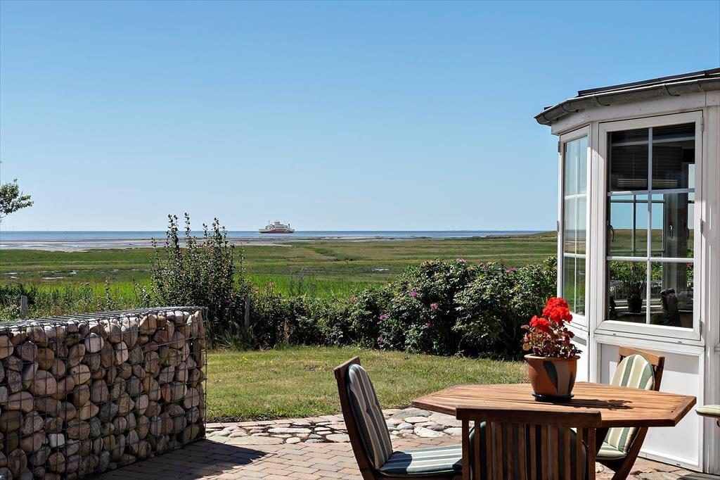 Dette lækre kvalitetssommerhus ligger særdeles naturskønt placeret i første række til Vadehavet. Den flotte havudsigt kan nydes fra terrassen såvel som inde fra huset – ja, selv fra badeværelsets spa kan du skue ud over Rømøs smukke kystlandskab.