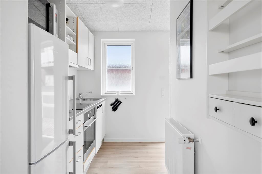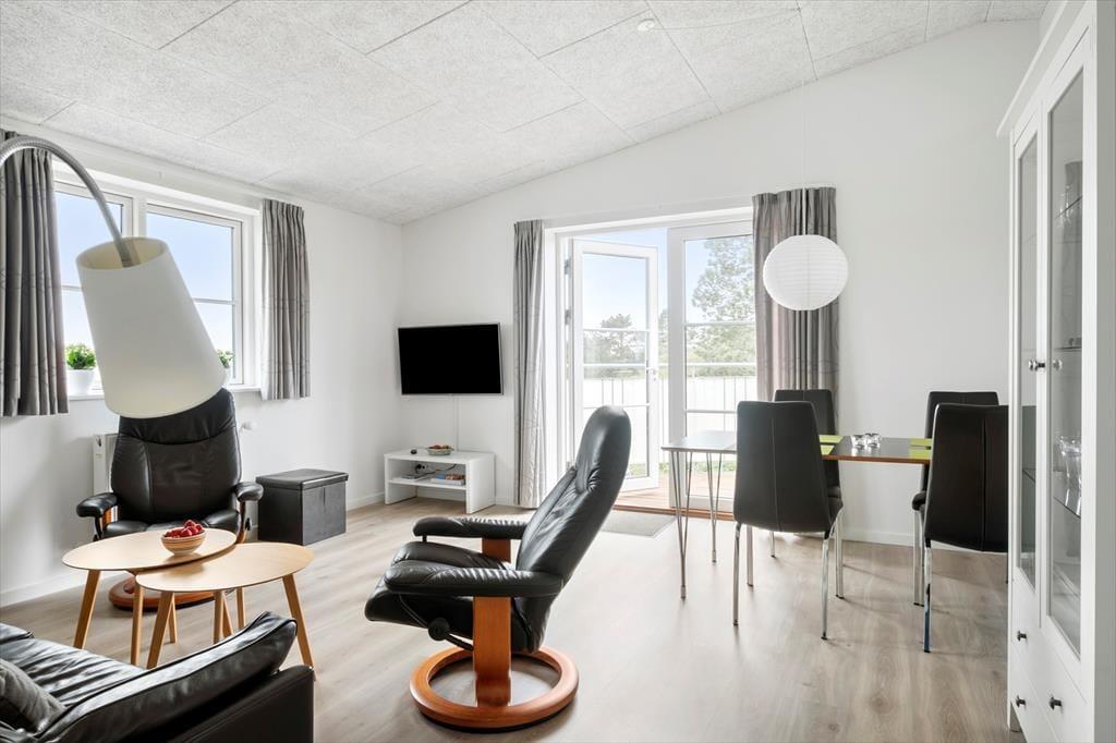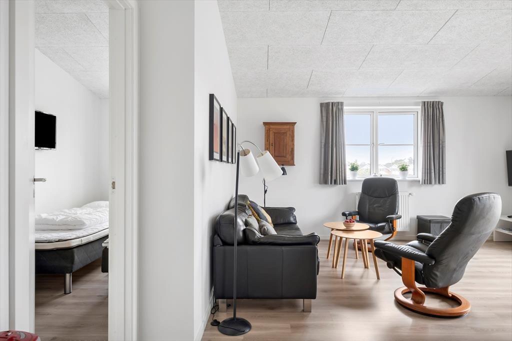 Den pæne, hvide ejendom, som ferielejligheden ligger i, er opført i 2017 og sidenhen ordentligt vedligeholdt. Det gælder også for selve lejligheden, der fremstår lys og indbydende inden døre – ikke bare i opholdsrummet, men også på de to soveværelser og på brusebadeværelset. Planløsningen er åben, så fra entréen fortsætter du direkte ind i køkkenet og dernæst stuen, og herfra har du endda adgang til altanen, så den er let at tage i brug på solrige dage. I det veludstyrede køkken kan du nemt trylle feriens små og store måltider frem, og takket være opvaskemaskinen får du hurtigt ryddet det hele af vejen efterfølgende, så der er god tid til at slappe af i stuen med en god bog eller en film på fladskærmen.