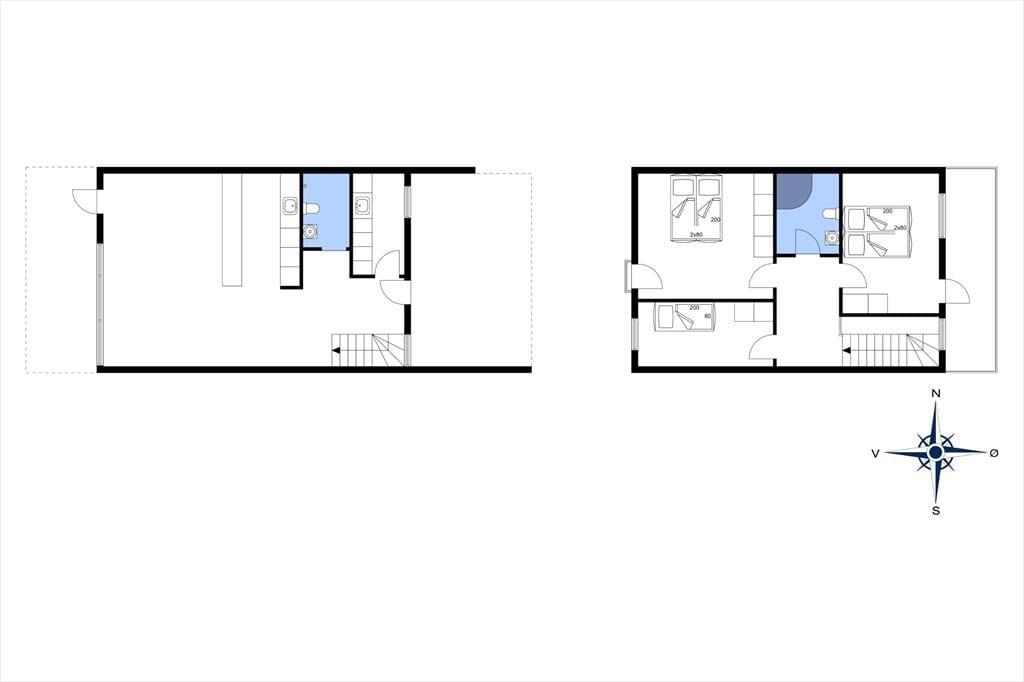 Ferieboligen, som er opført i to plan, ligger i et flot lejlighedskompleks fra 2009, der bærer navnet Skansen. Inden døre kan I brede jer på 124 m² fordelt på to etager. Planløsningen er gennemtænkt, så der er for eksempel badeværelse på begge etager, mens de tre soveværelser er samlet på første sal. I stueplan er størstedelen af kvadratmeterne dedikeret til det førnævnte opholdsrum, hvor køkkenet er integreret med stuen. Høje vinduespartier sørger for gennemstrømmende lysindfald fra øst og vest, og den gode loftshøjde bidrager til den behagelige atmosfære. Som en praktisk detalje er der også et bryggers med vaskefaciliteter i stueplan, så I kan friske garderoben op i løbet af ferien.