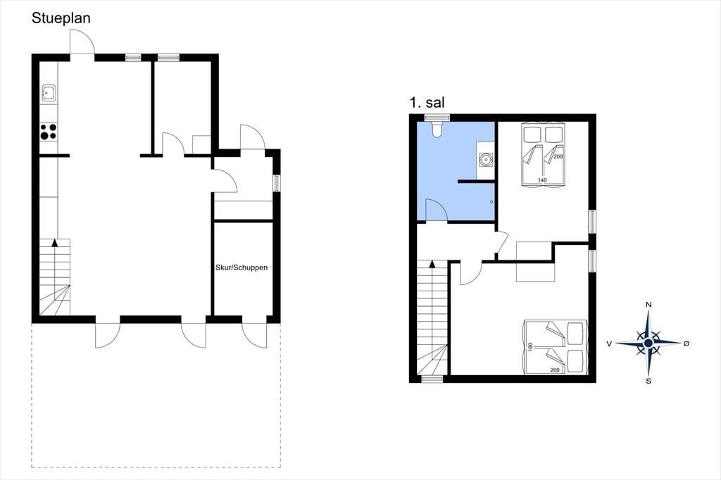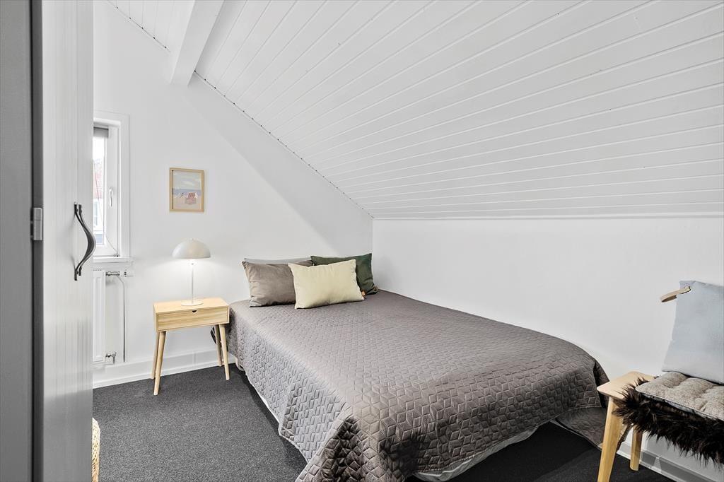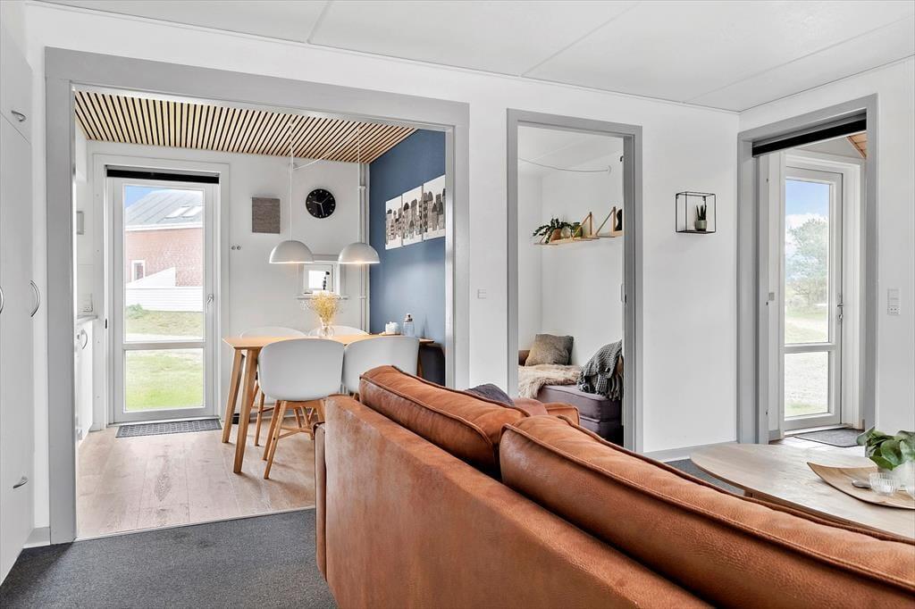 Feriehuset er opført i 1981 og måler 73 m² fordelt på to plan. I 2020 blev husets indre moderniseret, og her gik man grundigt til værks, så indretningen nu er lys, let og indbydende. Opholdsafdelingen består af spisekøkken og stue i åben forbindelse, så her kan I hygge jer med madlavningen, sidde længe og hyggesnakke omkring spisebordet eller flade ud med en god film på fladskærmen. Stueplan byder desuden på et lille soveværelse med dobbelt sovesofa, og på førstesal finder I yderligere to soveværelser, der begge er med dobbeltseng. Badeværelset er renoveret i 2026 og ligger også på førstesalen, og det har samme lyse stil som resten af ferieboligen.