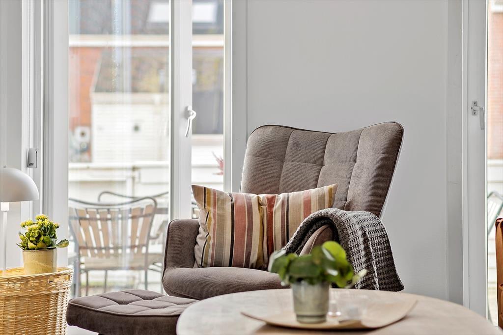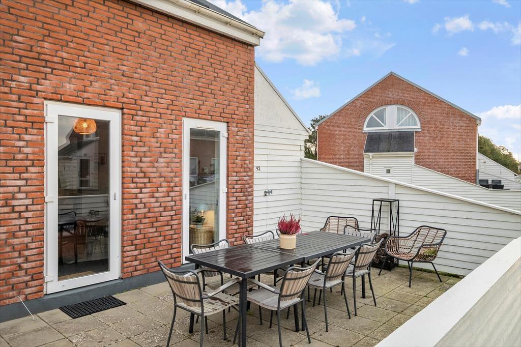 Når det gode vejr lokker jer udenfor, er det oplagt at slå sig ned på fliseterrassen, der ligger syd for huset. Terrassen er lukket af med hegn, og der er havemøbler, parasol og grill til rådighed, så I kan nyde solen og ferietilværelsen på allerbedste vis.
