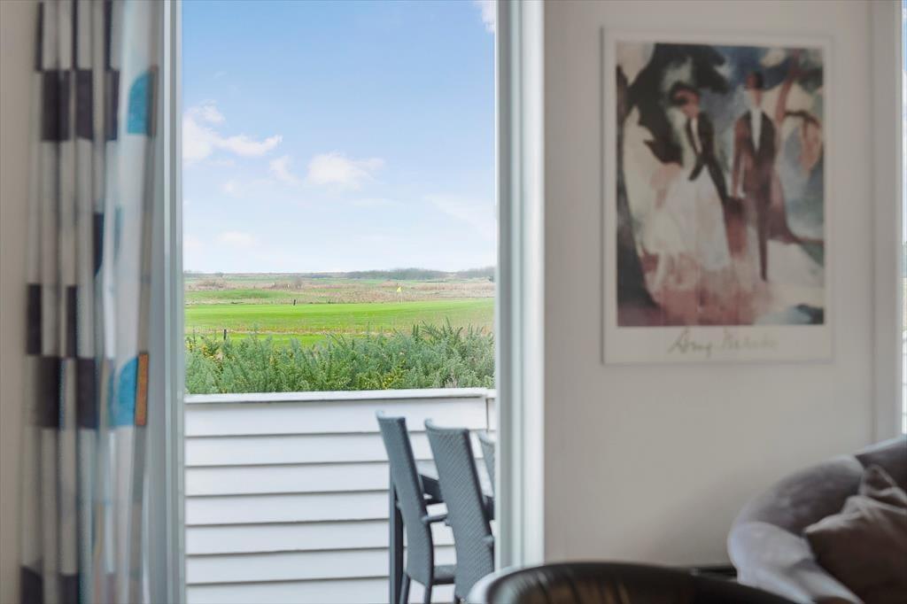 Fra stuen har I direkte adgang til en sydvendt terrasse, hvor I kan nyde sol, sommerliv og den skønne udsigt over det flade landskab. Grill, havemøbler og parasol er til rådighed, så I har alt, hvad I skal bruge for at sidde komfortabelt. Trænger I til at komme op af havemøblerne, er der masser at give sig til for både børn og voksne på feriecentrets fællesarealer.