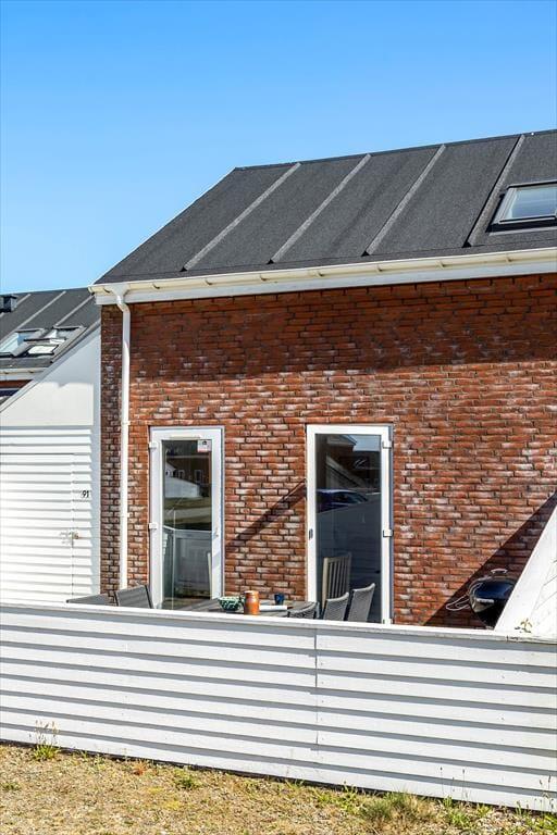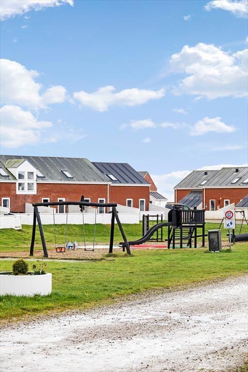 Feriens hyggestunder kan også oplagt foregå ude i det fri, for i forlængelse af opholdsrummet venter en dejlig terrasse. Den er omkranset af et hvidt hegn, som skærmer tilpas af mod naboerne, og samtidig er det nemt at smutte gennem lågen, når I vil hen med børnene, så de kan boltre sig på legepladsen, eller når I sammen vil spille minigolf og tennis eller have et dyp i swimmingpoolen. Der er et væld af fællesfaciliteter at vælge imellem i feriecentret – mange er inkluderet i prisen og andre kan benyttes mod betaling – og når I er ved at blive sultne, kan I vende hjem til terrassen for at grille og nyde den lyse sommeraften.
