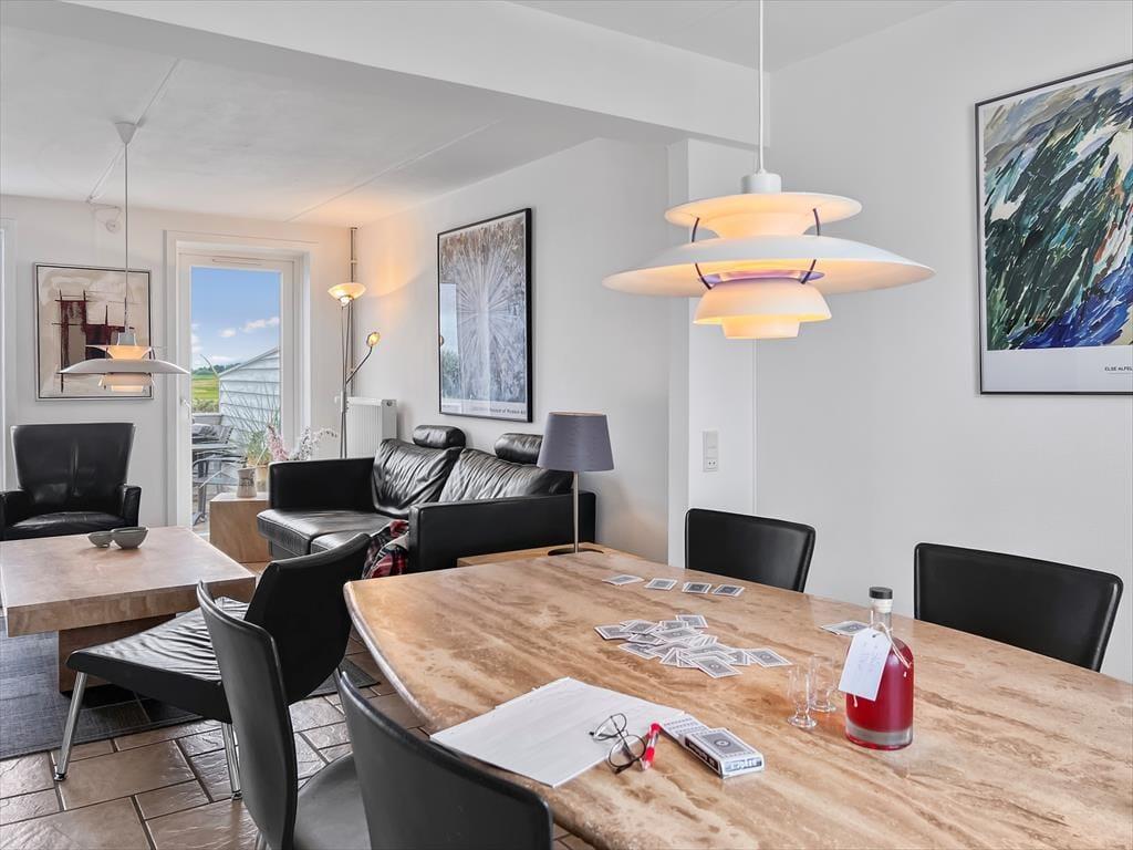 Dette dejlige rækkehus i Feriecenter Rim vækker straks en følelse af hjemlig hygge. Det moderne, men samtidigt rustikke udtryk med lyse træelementer og hyggelige detaljer skaber en varm og indbydende atmosfære. Her kan du sidde i den behagelige sofa med en kop kaffe og nyde den bløde brise, der kommer ind gennem store vinduer, eller sludre med familien om dagens oplevelser. Det åbne køkken giver mulighed for fælles madlavning med plads til spontane samtaler, mens de lyse soveværelser og sørger for ro og komfort når aftenen bliver til nat. Feriehuset er særligt ideelt til familien eller venner, der vil dele uforglemmelige øjeblikke i rolige omgivelser, uden at gå på kompromis med komforten.