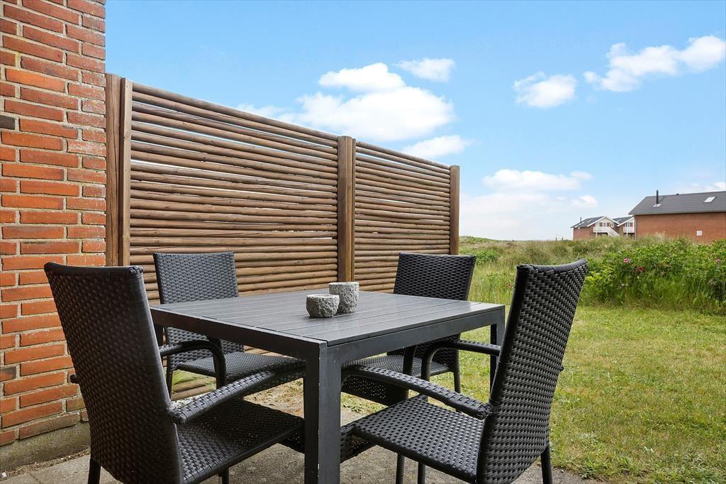 Fra stuen kan du træde lige ud på den tilhørende terrasse, der skærmes af hegn ind mod naboerne, men ellers er holdt åben, så du kan nyde det grønne landskab. Der er gode havemøbler og liggestole til rådighed, og hvis det ligefrem er for varmt at sidde i solen, kan du slå parasollen op og slappe af i skyggen, mens du overvejer, hvad der skal på grillen til aftensmad. Trænger du og familien til at komme op af havestolene, er der petanquebane, tennisbane, bordtennisbord og boldbaner i feriecentret, og fællesfaciliteterne