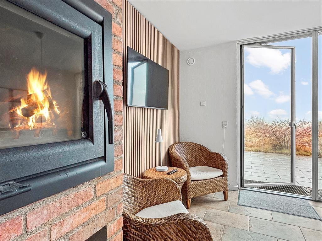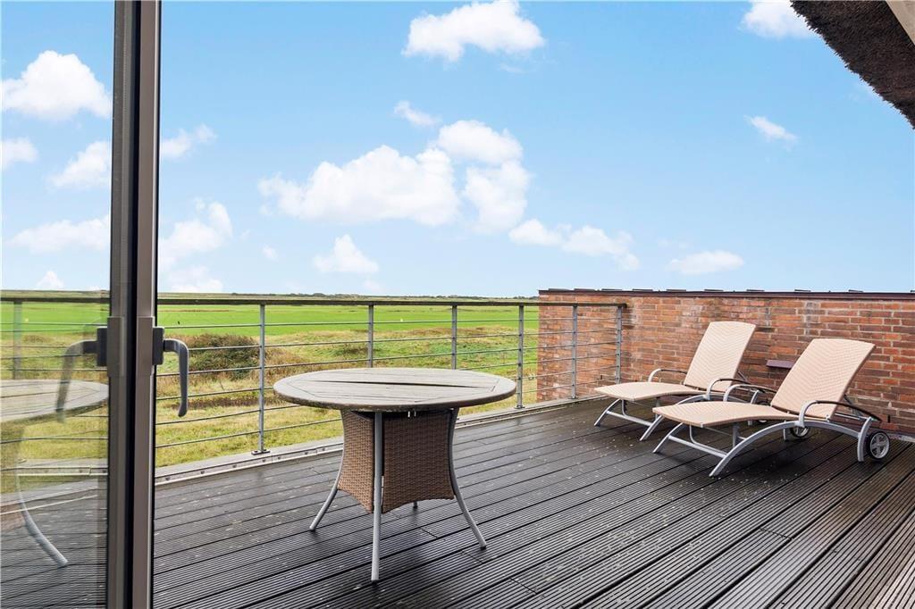 Når I nyder livet i førstesalens stue eller ude på altanen, kan I skue lige ud på den naturskønne golfbane og betragte færgen, der krydser Vadehavet på den anden side af diget. Udsigten kan også nydes fra stueplanets opholdsrum, så når I hygger jer inden døre ved indbygningspejsen, får I også glæde af det betagende syn.