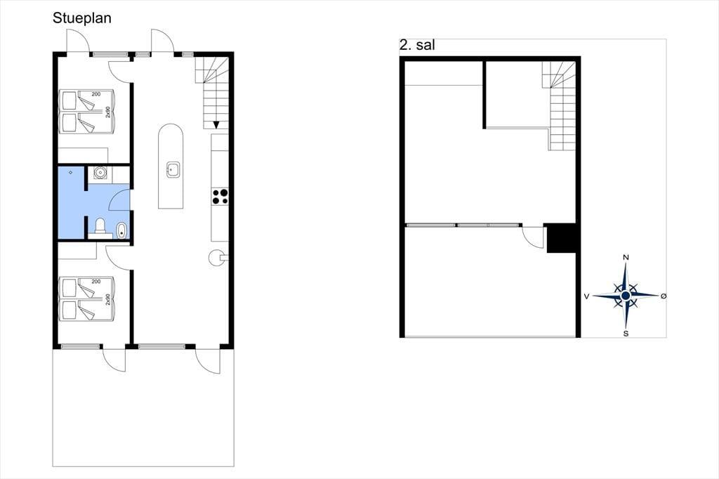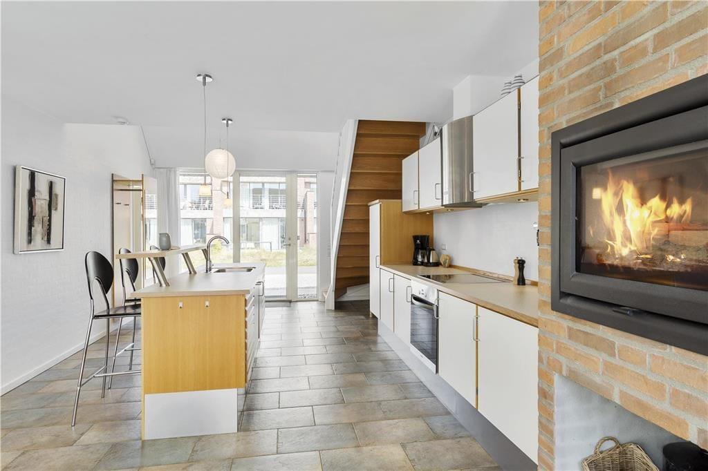 Huset er et kvalitetsbyggeri fra 2007, som er indrettet på flot og funktionel vis. Her er to plan at brede sig på, og såvel stueplan som førstesalen er udstyret med store vinduespartier, der inviterer masser af sollys indenfor. Stueplan byder på et lækkert badeværelse og to rummelige soveværelser, der begge er indrettet med dobbeltseng. Alle rum i stueplan har gulvvarme – også opholdsrummet, hvor stue og køkken er forenet på elegant vis. Her kan I hygge jer med at kokkerere i den veludstyrede køkkenafdeling, og efterfølgende kan de veltilberedte lækkerier serveres ved spisebordet nær indbygningspejsen. Får I lyst til at se film og slænge jer i en komfortabel sofa, kan I rykke det gode selskab op i førstesalens dejlige udsigtsstue. Stuen byder for øvrigt på to sovesofaer, så der er også mulighed for at rede op her på etagen.