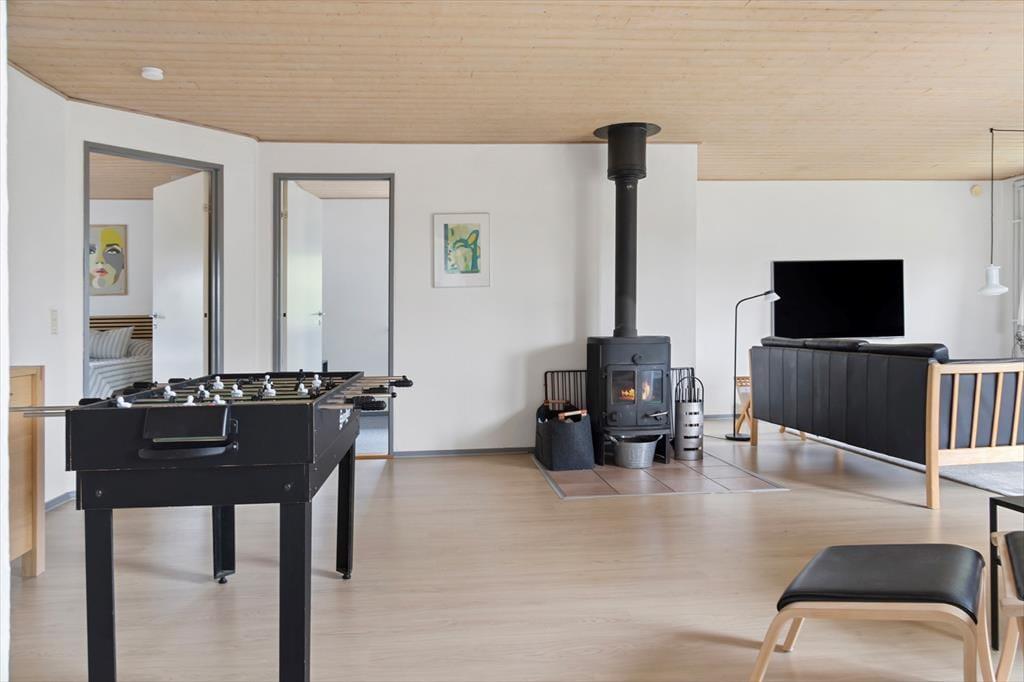 Når du træder ind, mærker du straks den varme og indbydende atmosfære. Det hyggelige sofahjørne ved brændeovnen indbyder til rolige aftener, hvor flammerne spreder behagelig varme på køligere dage. Køkkenet er rummeligt med god skabsplads og en ovn i komfortabel arbejdshøjde, så det er nemt at tilberede alt fra hurtige snacks til lækre middage. Fire gode og velindrettede soveværelser giver plads til både familie og venner, og med to badeværelser – hvoraf det ene har et badekar – er det let at finde tid til lidt ekstra wellness efter en aktiv dag i den friske havluft. Til de konkurrencelystne er der et bordtennisbord – perfekt til familiemesterskaber og sjove dueller, der kan vare til langt ud på sommeraftenen.