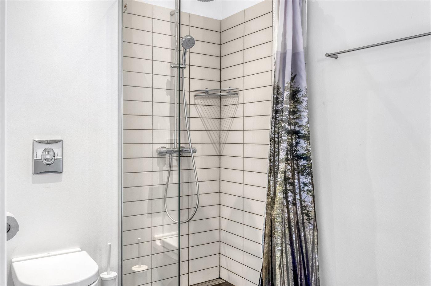 Der er 2 badeværelser med bruseniche og 2 toiletter I saunaen er der mulighed for afslapning.