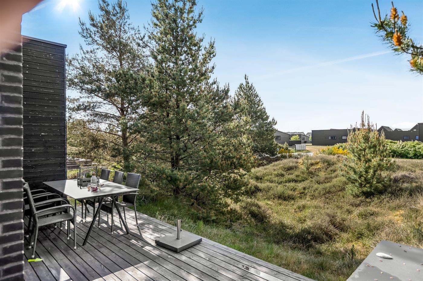 Ferieboligen er beliggende på en 300 m² stor naturgrund. Der er 2500 m til havet. Der er 700 m til Vadehavet. Nærmeste forretning er beliggende i en afstand af 1500 m. Til ferieboligen hører åbent terrasseareal. Udgang til altan. Grill til rådighed. Der er installeret stik til opladning af elbil. Type 2 stik. Parkering ved ferieboligen.