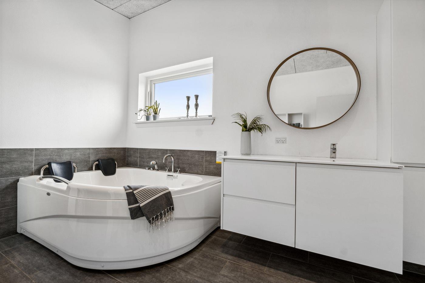 Der er 2 badeværelser med bruseniche og 2 toiletter. Der er gulvvarme på 2 badeværelser.