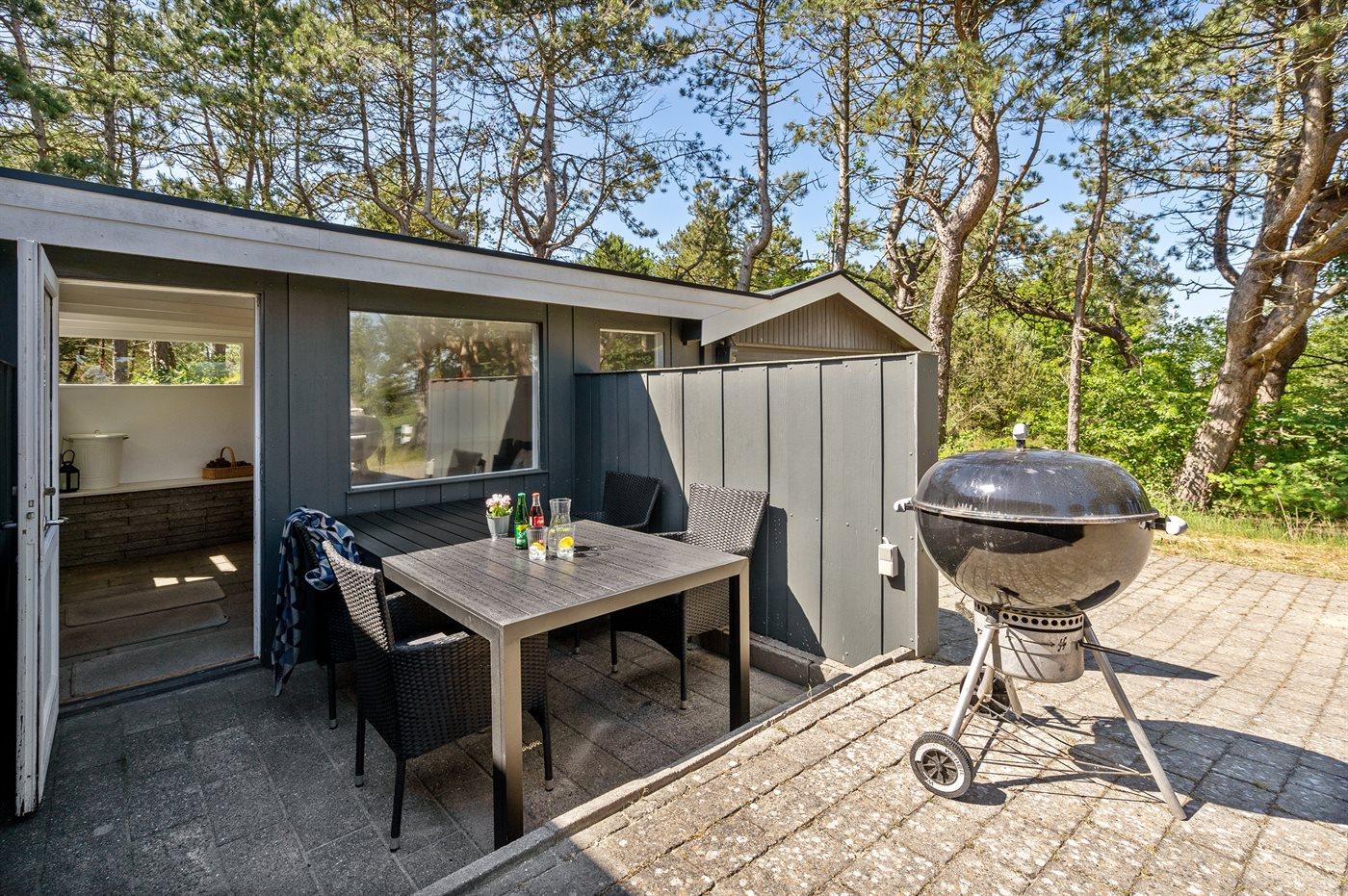 Ferieboligen er beliggende på en 737 m² stor naturgrund. Der er 2000 m til havet. Der er 100 m til Vadehavet. Nærmeste forretning er beliggende i en afstand af 250 m. Der er en golfbane i en afstand af 500 m. Til ferieboligen hører 40 m² terrasseareal. Desuden er der 20 m² overdækket terrasse. Gynge. Parkering ved ferieboligen.