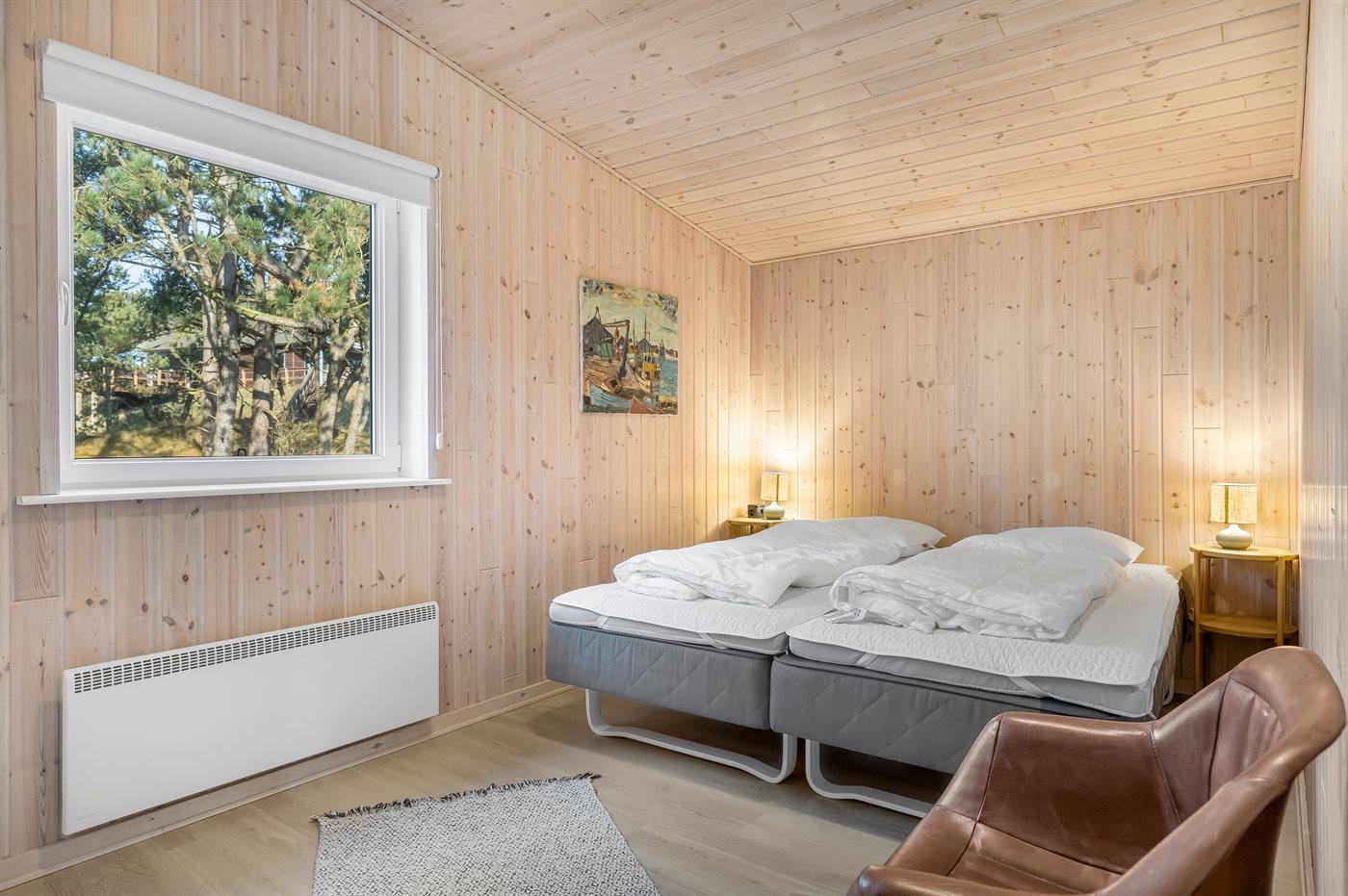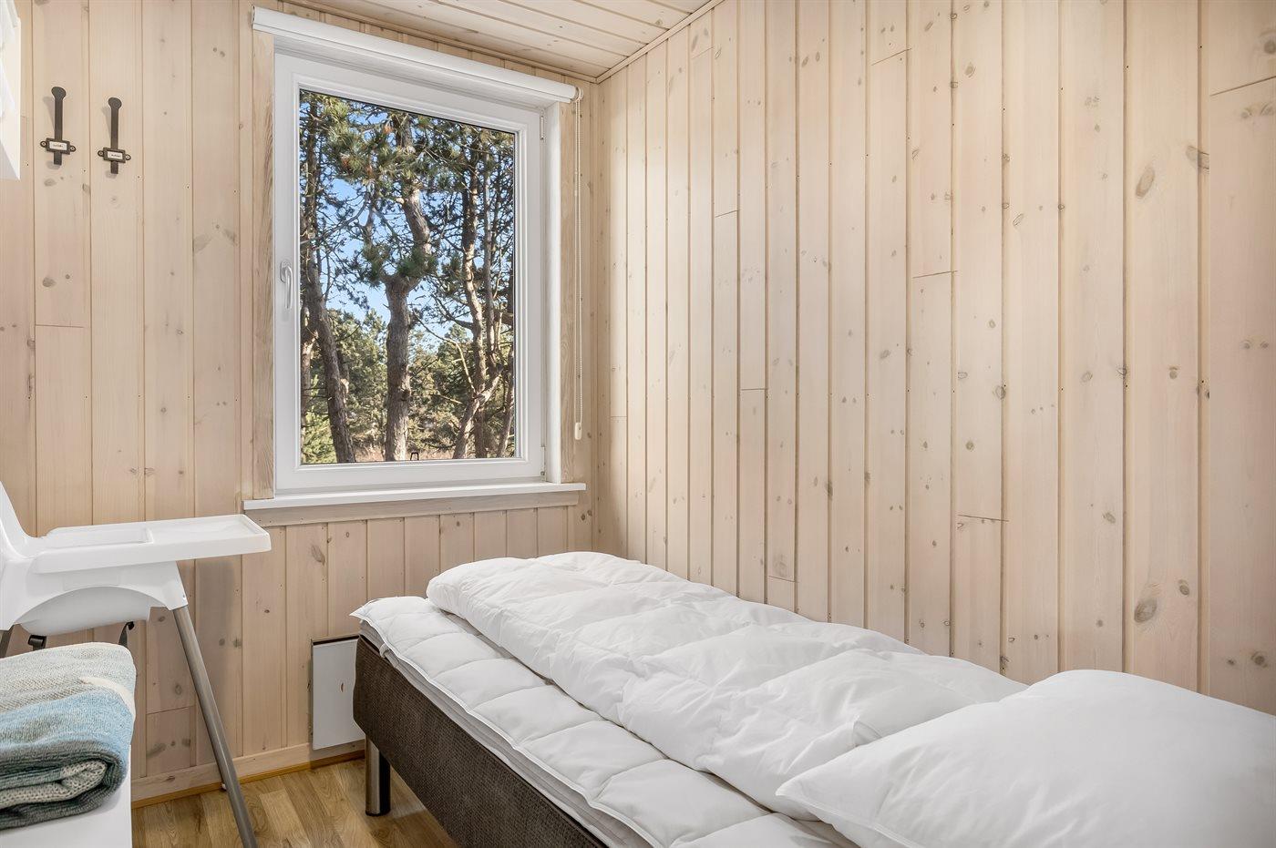 Der er i alt 3 soveværelser. Sovepladserne fordeler sig på: 2 sovepladser i dobbeltseng. 3 sovepladser i enkeltsenge. Derudover er der 1 stk. barneseng.