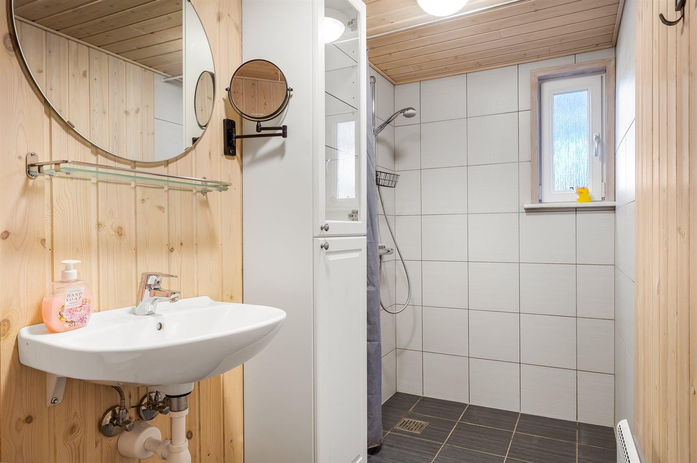 Der er 1 badeværelse med bruseniche og 1 toilet.
