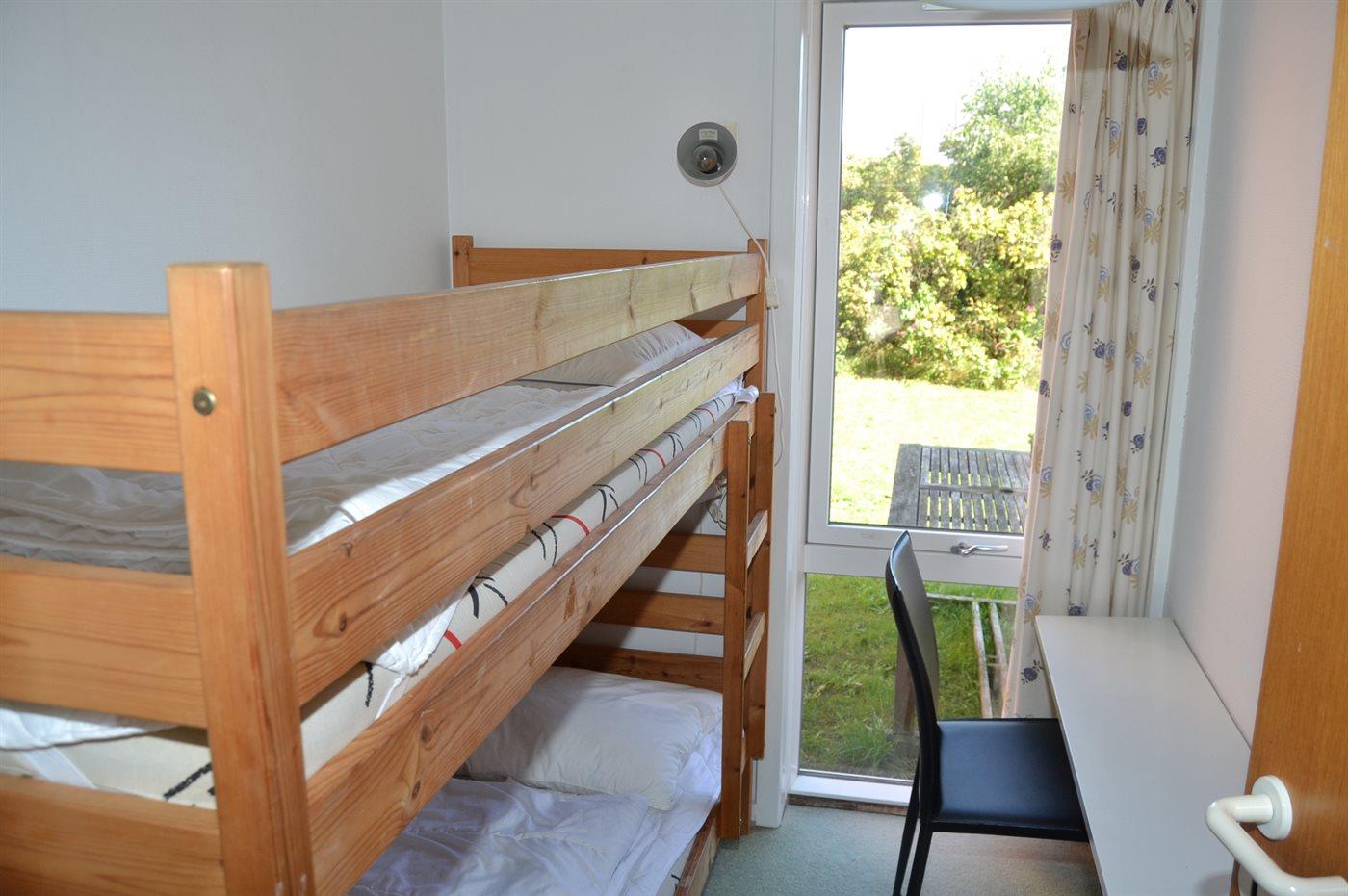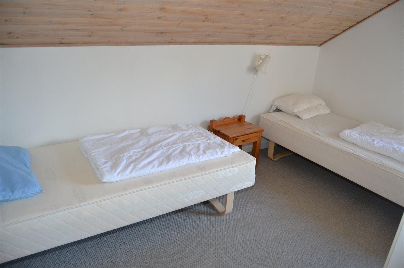 Der er i alt 3 soveværelser. Sovepladserne fordeler sig på: 2 sovepladser i dobbeltseng. 2 sovepladser i enkeltsenge. 2 sovepladser i køjeseng. Derudover er der 1 stk. barneseng.