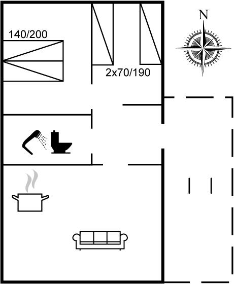 Der er i alt 2 soveværelser. Sovepladserne fordeler sig på: 2 sovepladser i dobbeltseng. 2 sovepladser i enkeltsenge.