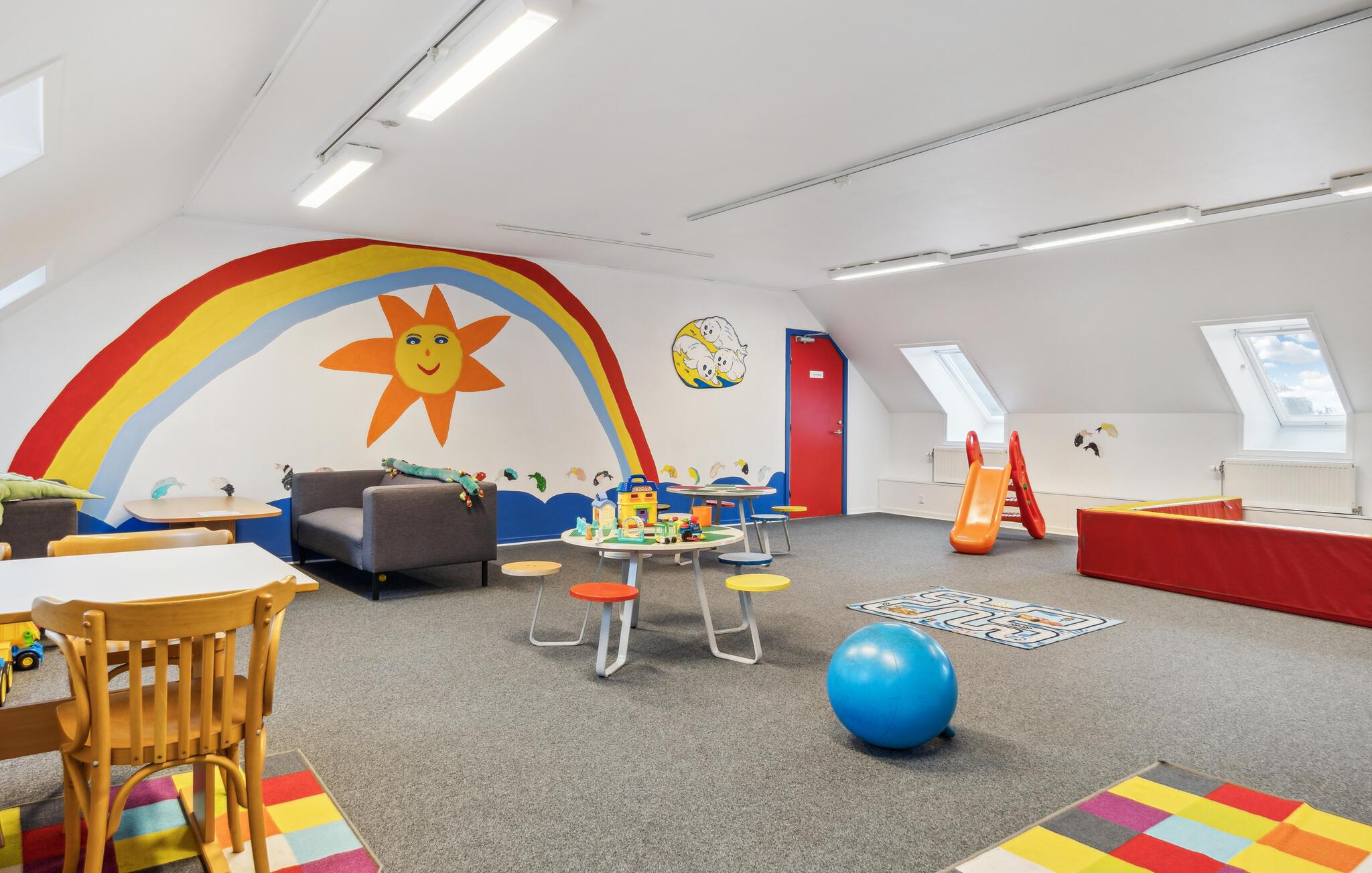 Fra en af ??de to terrasser i huset har I udsigt til legepladsen, ideelt hvis børnene vil lege udenfor.