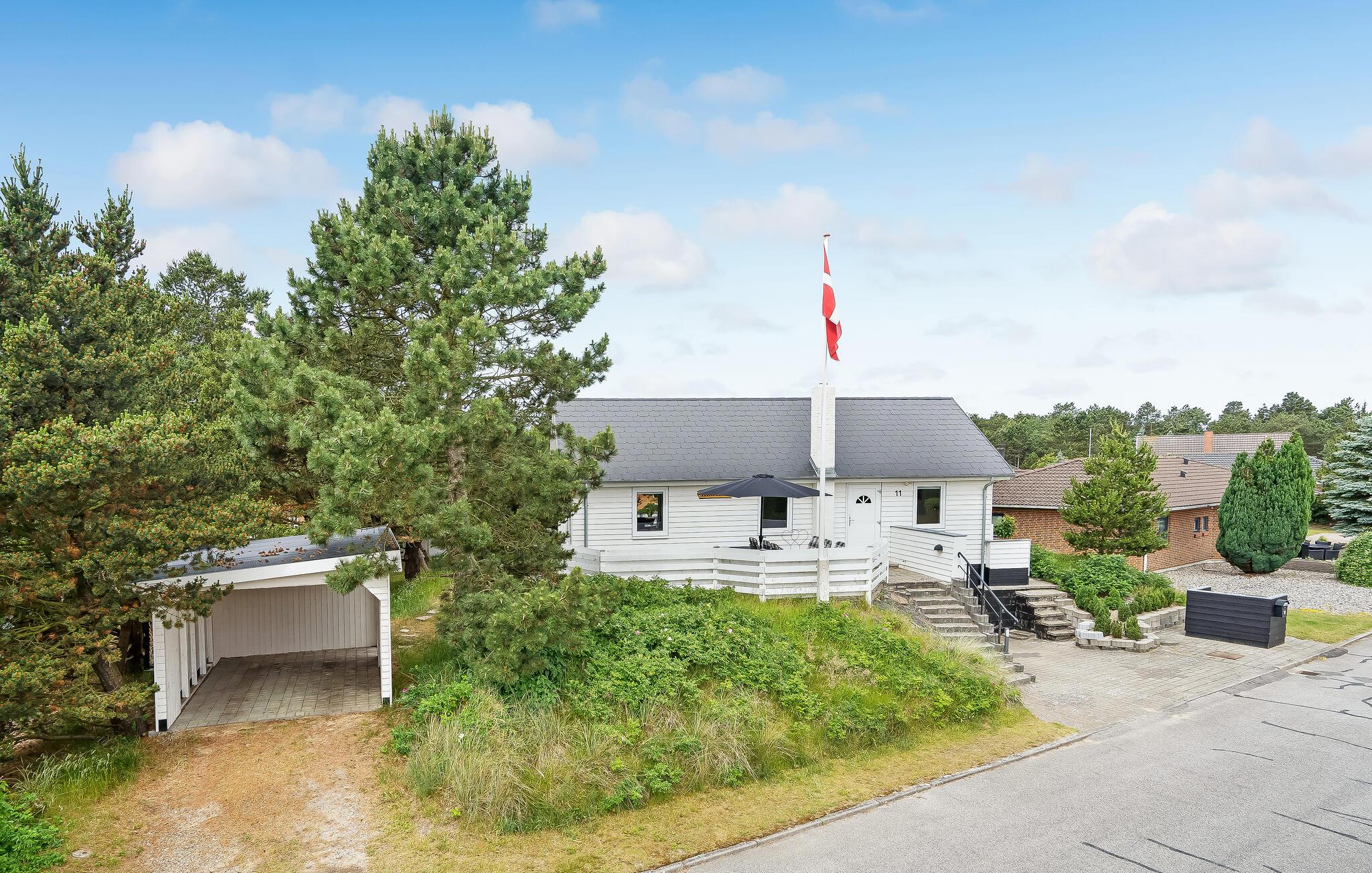 Samtidig høres vindens susen i det gamle træ, uden at I mærker vinden, der er mange småfugle der kvidrer, nogle gange kommer der rådyr på besøg, som ikke er bange for mennesker, og man skulle næsten tro, at de var tamme. Altsammen er med til at gøre "Klitrosen" til et roligt og skønt sted, hvor I kan koble helt fra og samle ny energi. På grunden findes en carport, hvorfra der er flisebelagt adgang direkte til huset. I har mulighed for at oplade jeres elbil (16a CEE stik).