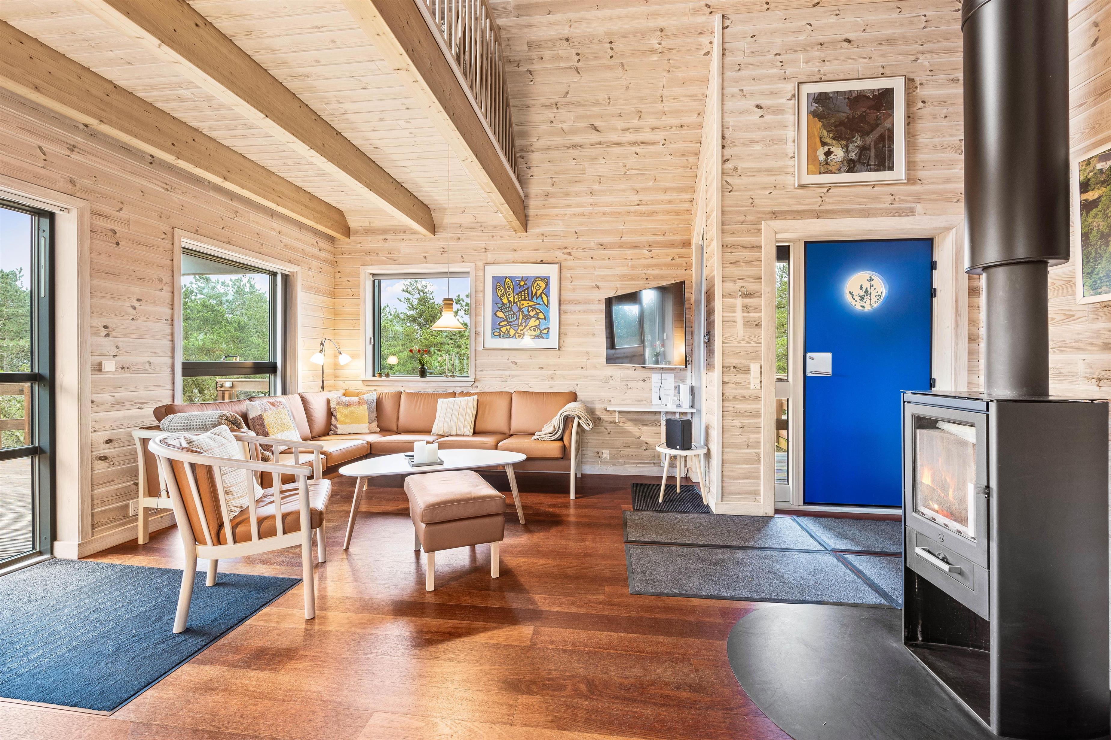Hyttestemning med brændeovn og rolige omgivelser