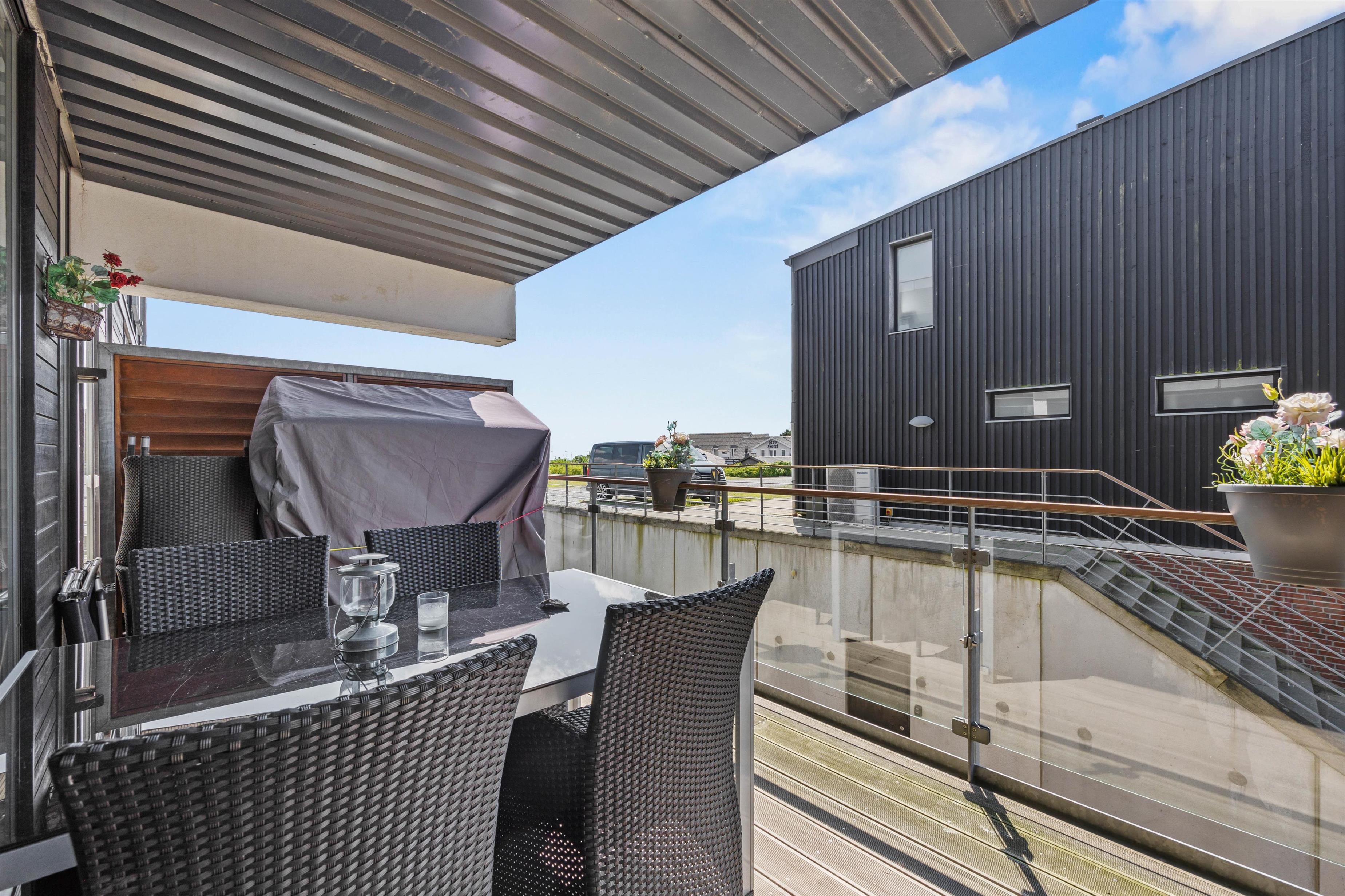På den lukkede terrasse foran lejligheden er der gode siddepladser, hvorfra I kan nyde den flotte udsigt over Vadehavet. Den store, sydvendte altan er også et skønt opholdssted: Her kan I nyde solen og følge med i livet på torvepladsen, mens I slapper af i de komfortable havemøbler. Tænd op i grillen til aften, og nyd et lækkert grillmåltid sammen, imens skyggerne bliver lange. En vandretur langs havnen og Vadehavet er en skøn oplevelse at afslutte dagen med.