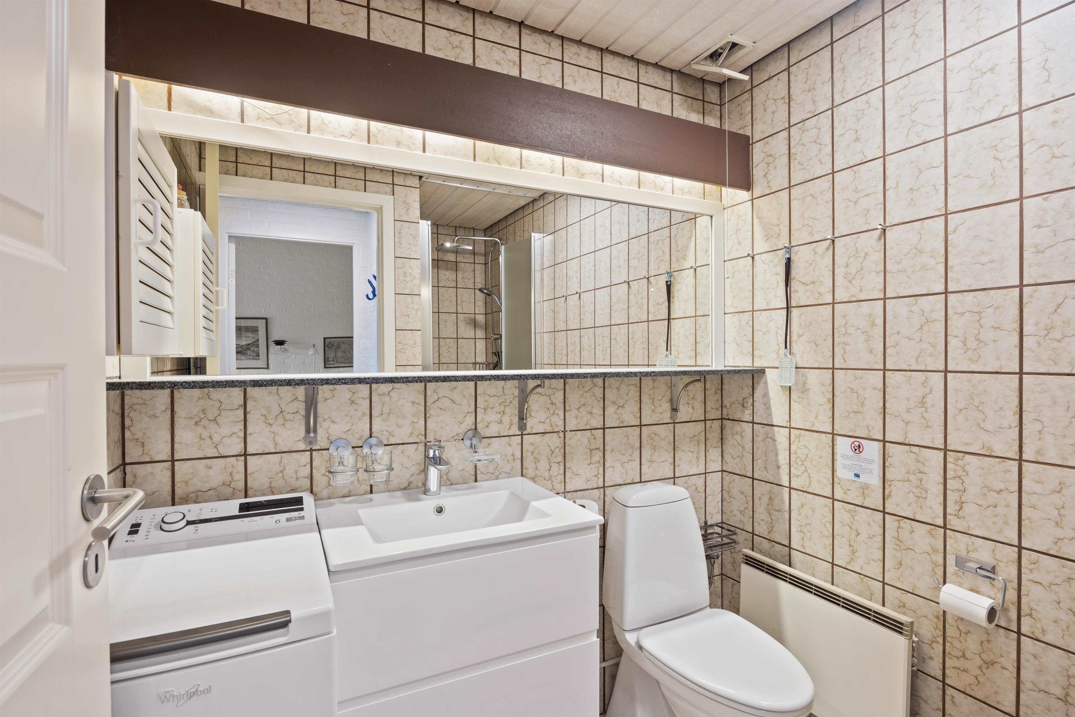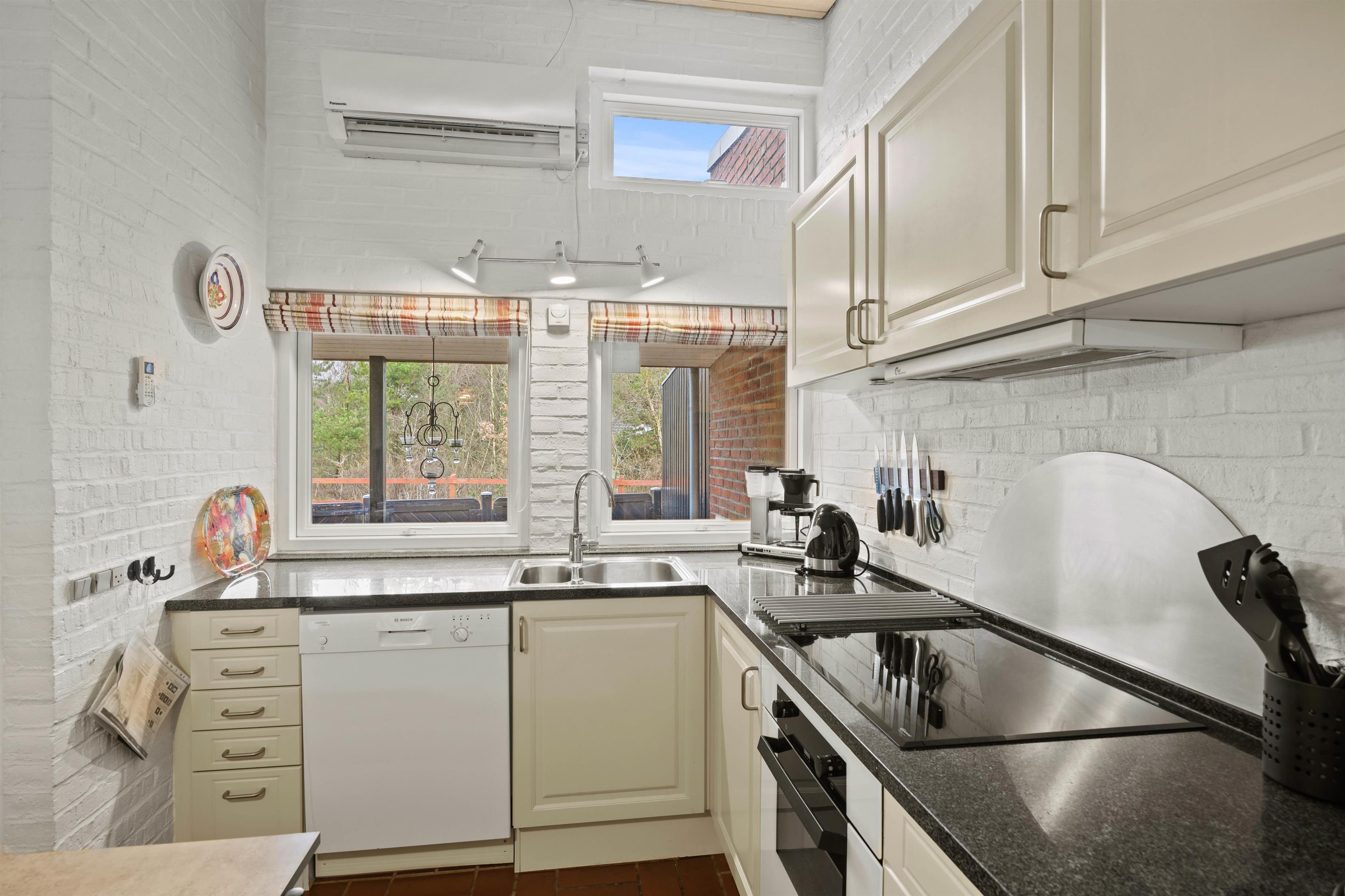 Nyd tiden med familien i det hyggelige sofahjørne, som kan nås via to trin, mens den knitrende brændeovn og den energibesparende varmepumpe sørger for en behagelig temperatur i rummet. Vaskemaskinen på badeværelset er særligt brugbar til længere ophold. Der er logså ynhurtigt internet, så I kan surfe og streame uden problemer.