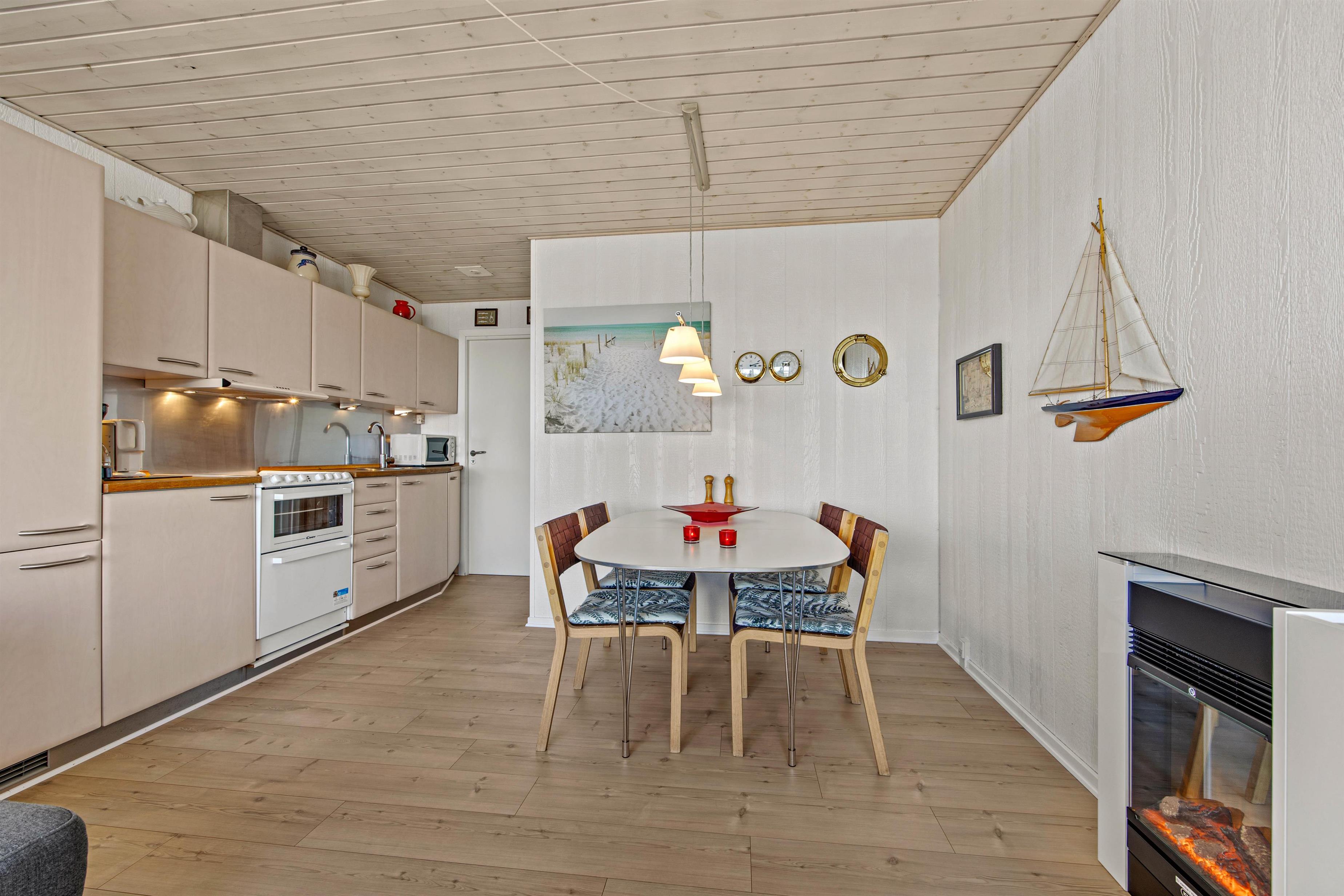I denne lille, men fine ferielejlighed kan I nyde en afslappende ferie med op til 4 personer og jeres hund. Lejligheden har to lukkede terrasser, en mod øst og en mod vest. Den ligger i anden række til vandet. Takket være anlæggets velovervejede kaskade-lignende konstruktion og den skrånede grund har I stadig udsigt over Vadehavet. I kommer ind i lejligheden via den første terrasse og soveværelset, som er udstyret med en dobbeltseng i en skabsenhed. I det veludstyrede, åbent integrerede køkken kan I tilberede en lækker aftensmad. Der findes endda en lille opvaskemaskine samt en miniovn med glaskermamiske kogeplader. Efterfølgende kan I slappe af i sofaen med jeres yndlingsfilm og lade hverdagens stress bag jer, mens den elektriske pejs fylder rummet med varme. Sofaen i stuen kan omdannes til en dobbelt sovesofa. Gennem glasdøren i panoramavinduet i opholdsområdet kommer I direkte ud på den østvendte terrasse. Her kan I nyde en dejlig morgenmad i morgensolen og samtidig nyde den smukke udsigt over Vadehavet. Bestemt ikke en dårlig start på en feriedag! Senere på dagen kan I blot følge solen over til vestterrassen, hvor I kan grille og nyde solens stråler i fulde drag.
